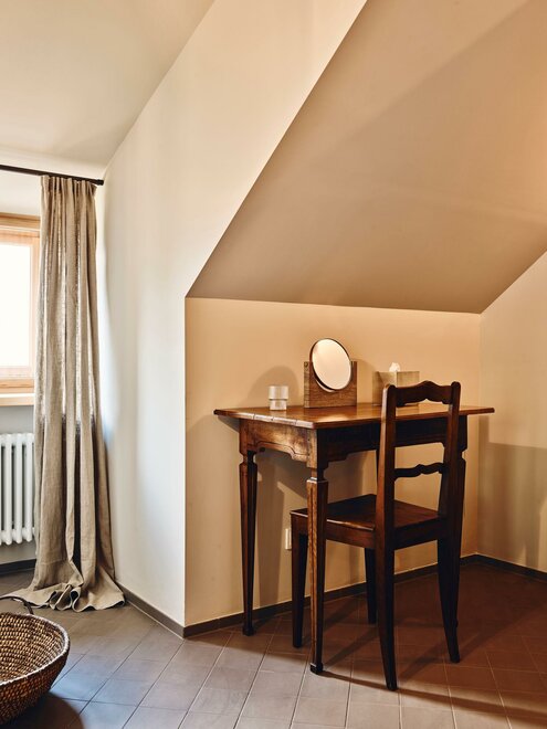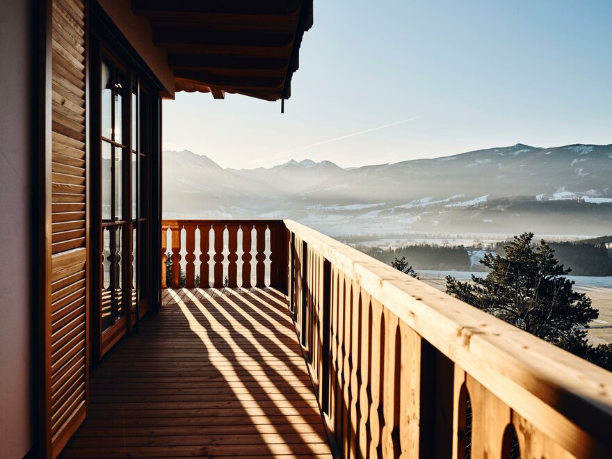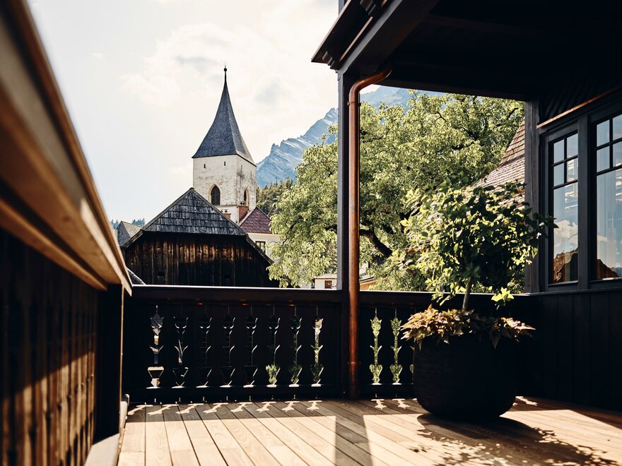 Naše deluxe dvoulůžkové pokoje nabízejí na 48 m² nejvyšší komfort. K dispozici máte manželskou postel, koupelnu se sprchou a částečně vanou, oddělené WC a pohodlnou pohovku s rozkládací postelí. Výhled na Grimming a kostel svatého Jiří můžete vychutnat z vašeho balkonu.