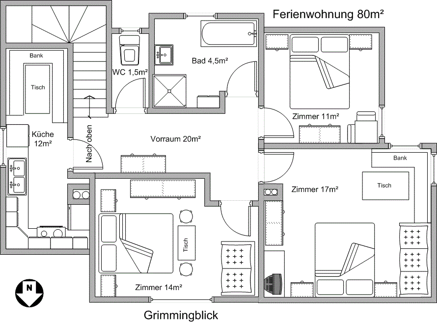 Velikost 78 m² Obsazení 2 - 6 dospělí , 0 - 4 děti Pokoje 3 Ložnice 1 Podrobnosti o pokoji