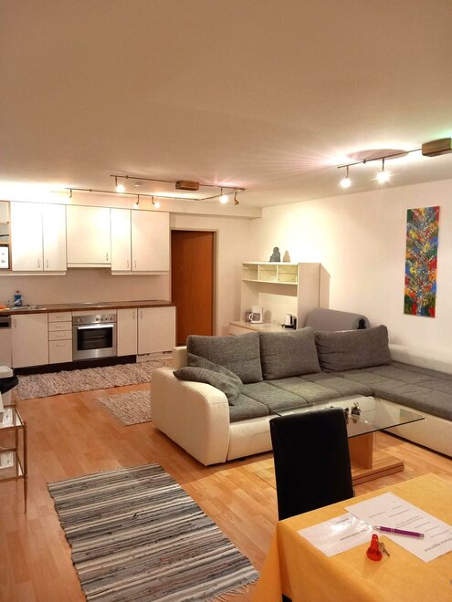 Byt o výměře cca 70 m². Obývací kuchyň, 1. ložnice, koupelna a 1. pohodlná sedací souprava (rozkládací jako dvojlůžko) spolu s šatní skříní a psacím stolem. Satelitní televize a stereo. Kuchyňský a jídelní prostor s kuchyňskou linkou (elektrický sporák, chladnička) plně vybavený nádobím, kávovarem, toustovačem a mikrovlnnou troubou atd. a také velký jídelní stůl se 5 čalouněnými židlemi.