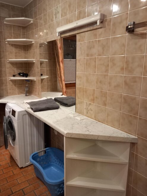 79m2 byt-1x zimní zahrada 1x ložnice včetně 1x postele extra 1x obývací kuchyně. Koupelna s WC, 2. umyvadlo, sprcha a pračka.