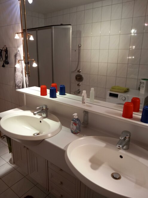 oddělené WC, dvojité umyvadlo, počet koupelen: 1, počet toalet: 1, tekoucí studená/teplá voda, bathtub with integrated shower
