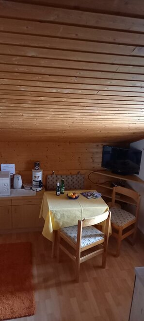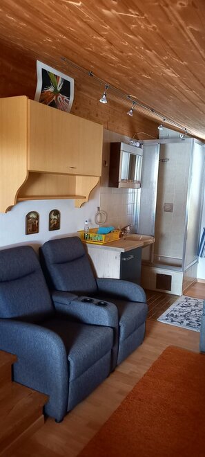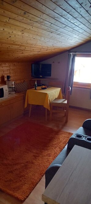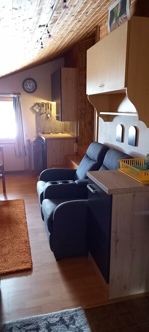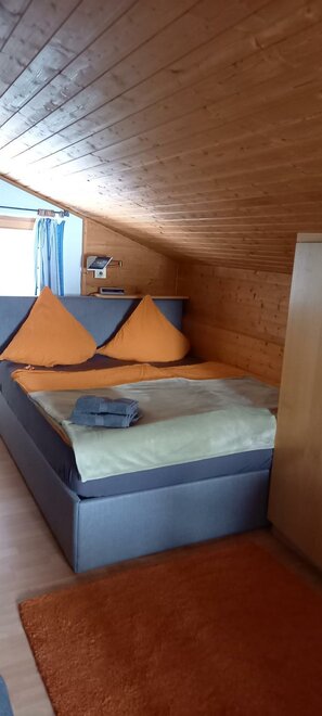 Malý, 30 m² velký, útulný, rustikální podkrovní pokoj s dřevěným obložením