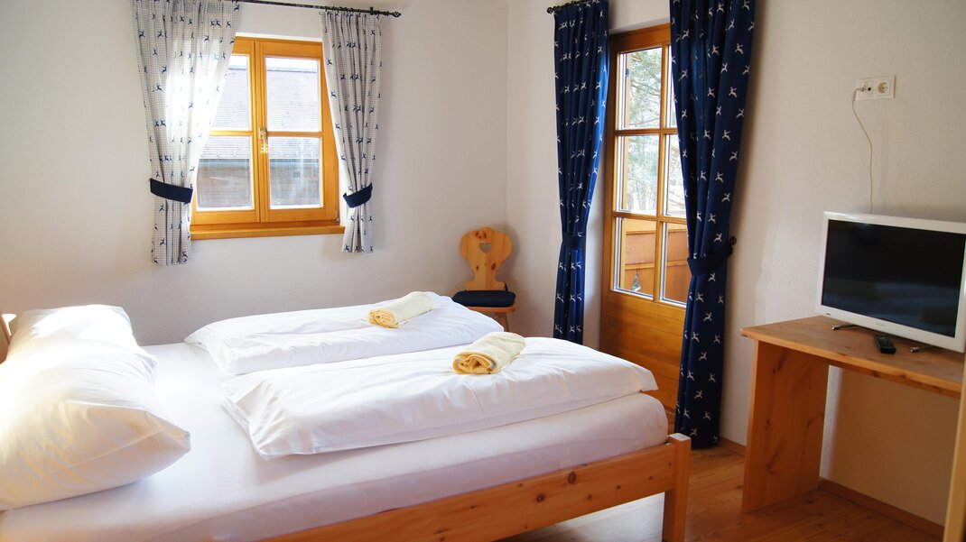Naše tradičně zařízené mezonetové apartmá nabízí 3 ložnice, obývací prostor s jídelním koutem, kuchyň, velký kachlový sporák, televizní koutek, vlastní terasu, balkon, chodbu, 2 koupelny a extra WC. / 1 ložnice se 2 jednolůžkovými postelemi, 1 ložnice s manželskou postelí 180x200 cm a balkonem, 1 ložnice s francouzskou postelí 140x200 cm / Jeden den na čerstvém horském vzduchu si můžete v našem apartmá opravdu pohodlně užít.