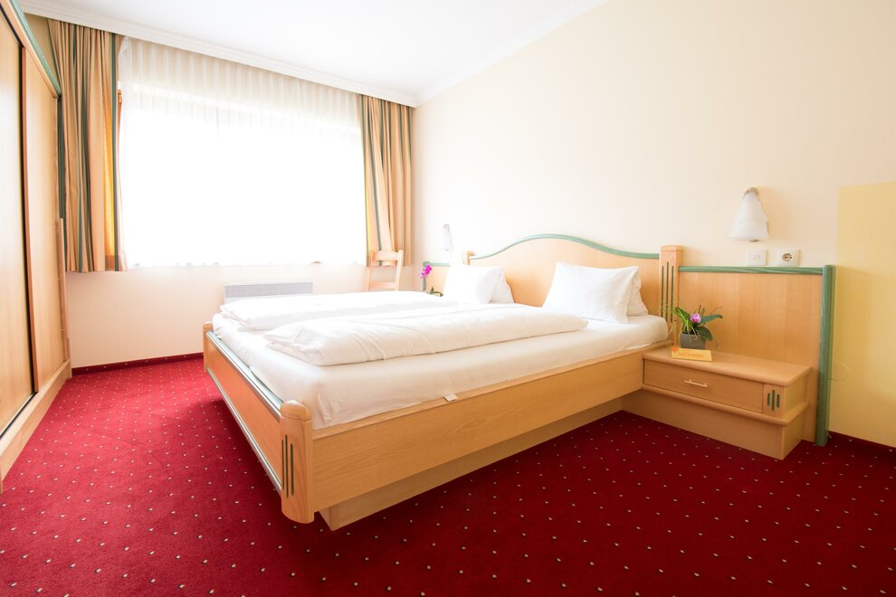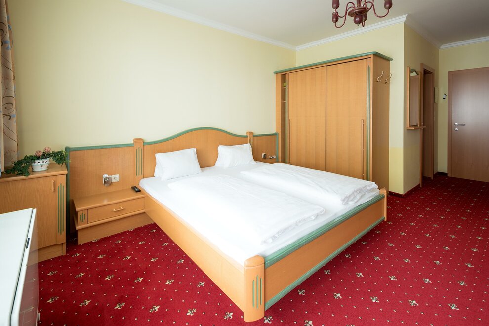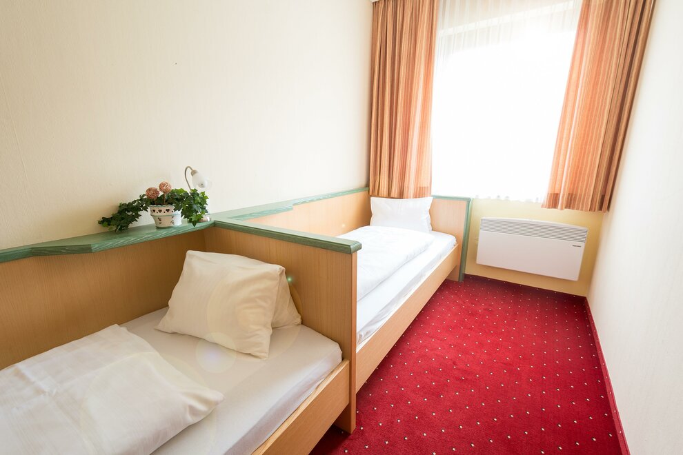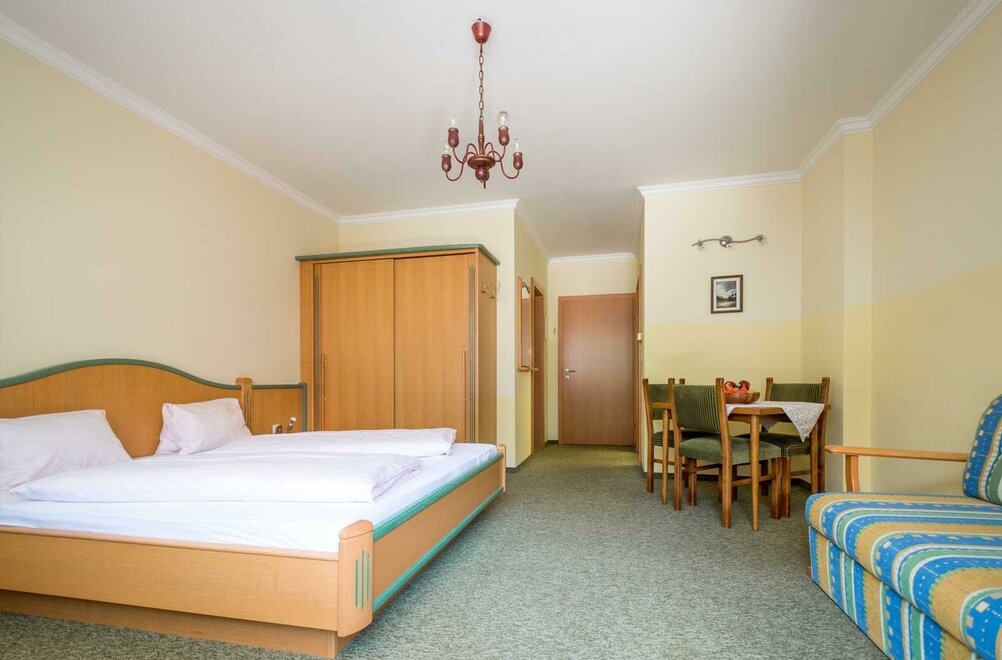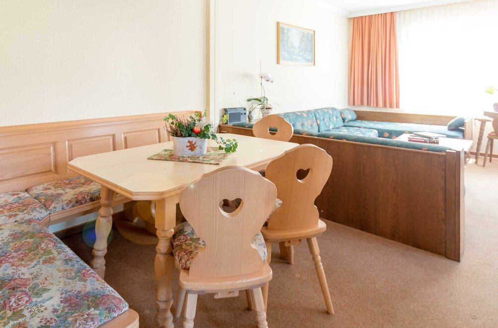 Apartmán Typ A, č. 2 v 1. patře (východ) s přibližně 68 m² pro 4 až 6 osob, skládající se z předsíně, 2 ložnic, velkého obývacího pokoje s rozkládací pohovkou kuchyně, 3 samostatné hygienické místnosti (koupelna, sprcha, WC) balkon