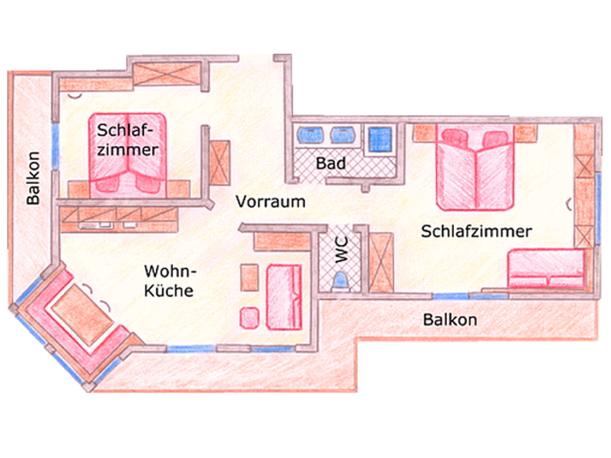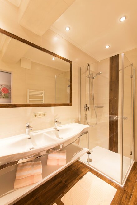 U nás v domě Rosengartl bydlíte v rodinné atmosféře ve třech různých apartmánech, které jsou pečlivě zařízeny s koupelnou/WC, dvěma oddělenými ložnicemi, plně vybavenou obytnou kuchyní, W-LAN, TV a balkonem. Naše dvě velké apartmány navíc disponují dvěma plnohodnotnými manželskými postelemi.
