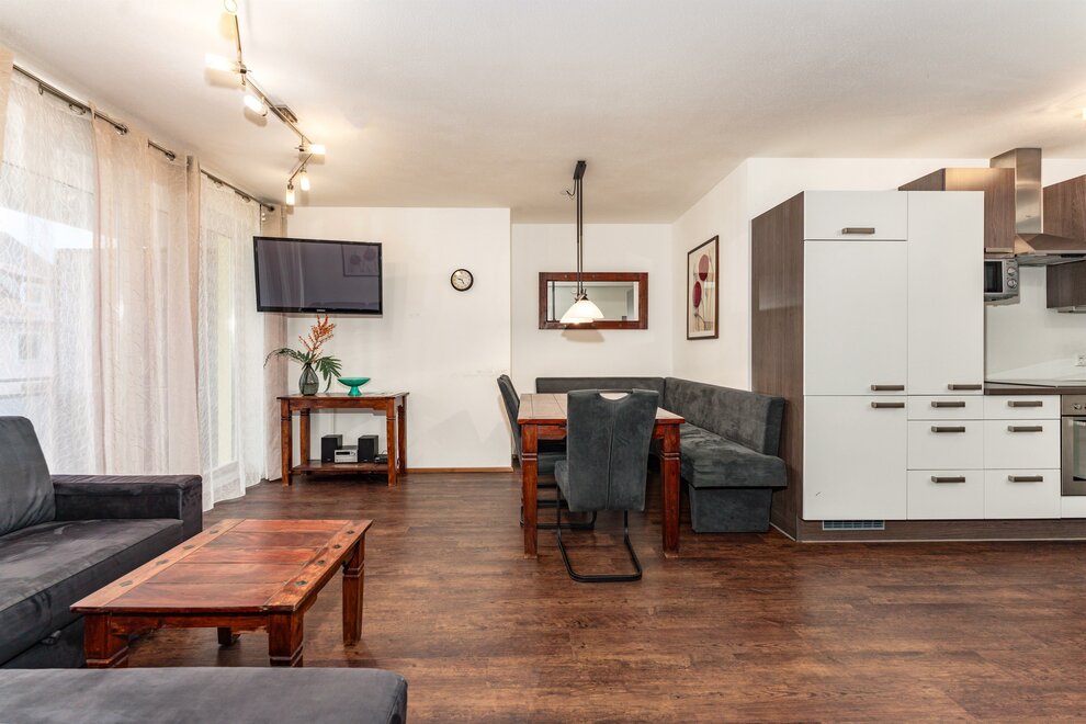 MODERNÍ, ELEGANTNÍ APARTMÁN V LOKALITĚ SKI-IN/SKI-OUT! Stylový a moderní apartmán „Lange Gasse“, postavený na podzim 2012, nabízí na 66 m² obytné plochy prostor pro 2-6 osob. Vyzařuje vysokou kvalitou interiéru z domácích materiálů, které byly pečlivě vybrány a barevně sladěny, což dává apartmánu moderní a přesto tradiční vzhled. Majitelé se zaměřili na pohodlí a kvalitu. Kromě prostorného, útulného obývacího pokoje s pohovkou, plně vybavené kuchyně s jídelním koutem, 2 ložnic, 1 koupelny s vanou a samostatného WC, apartmán nabízí prostorný slunečný balkon orientovaný na západ. Ten zve k opalování, relaxaci a vychutnávání výhledu až do večerních hodin. Ale nejen apartmán vás přesvědčí, také lokalita je perfektní. K dolní stanici Planet Planai dojdete za pouhých 400 metrů, stejně jako do centra města Schladming s řadou restaurací a obchodů, které jsou vzdálené méně než 300 metrů. Supermarket „Spar“ najdete pouhých 100 metrů daleko. Také řada zimních a letních aktivit začíná v bezprostřední blízkosti. Pokud tedy hledáte skvělý apartmán na vaši příští dovolenou na klidném a centrálním místě, pak je apartmán „Lange Gasse“ pravým volbou pro vás! DŮLEŽITÉ: Nenechte se zmást silnicí B320, která prochází za budovou. Byt je orientován na jihozápad a není v žádném případě ovlivněn hlukem z ulice. Lokalita: centrálně v Schladmingu, 3 minuty chůze k Planai, 2 minuty chůze do centra města Maximální počet osob: 6 Počet apartmánů: 1 Hlavní výhody: Bezplatné Wi-Fi, prostorný slunný balkon, supermarket 1 minuta chůze