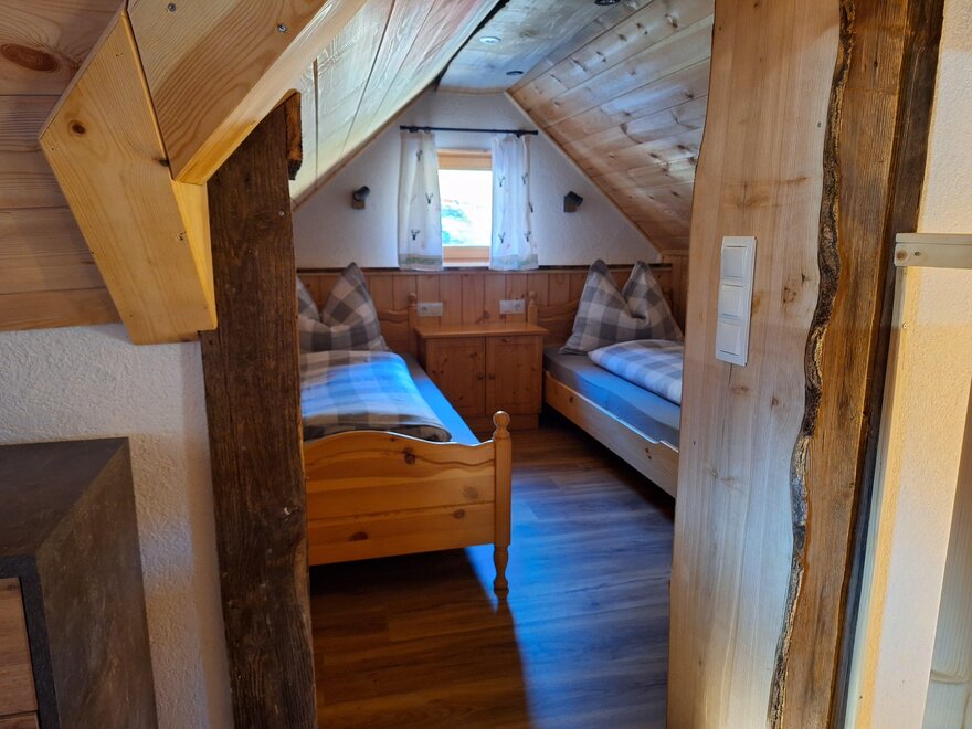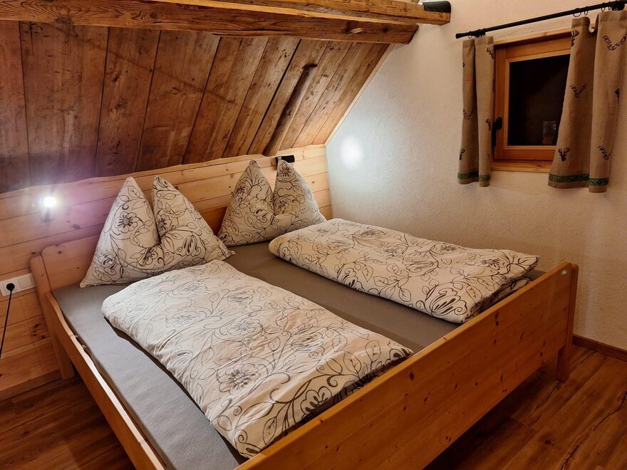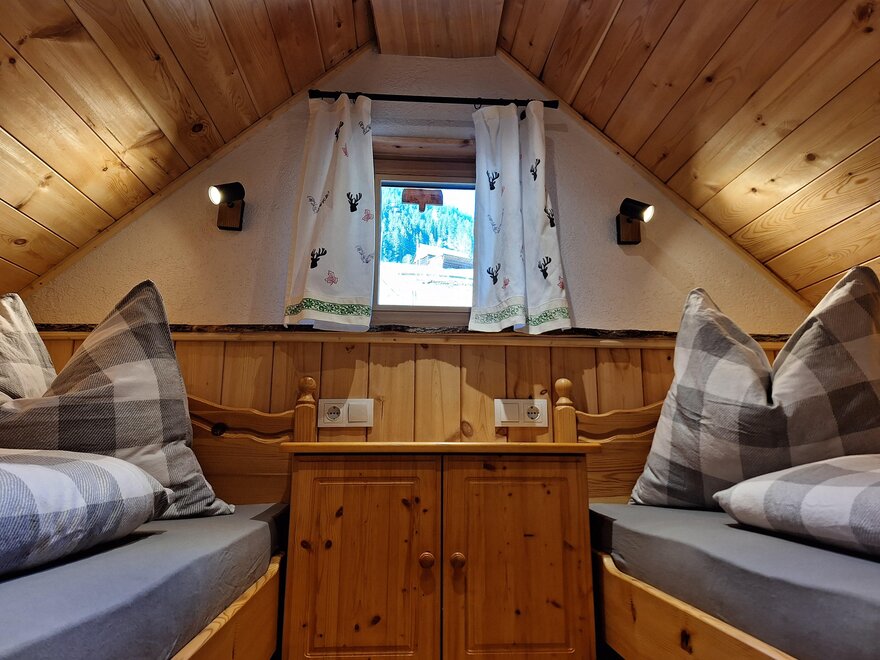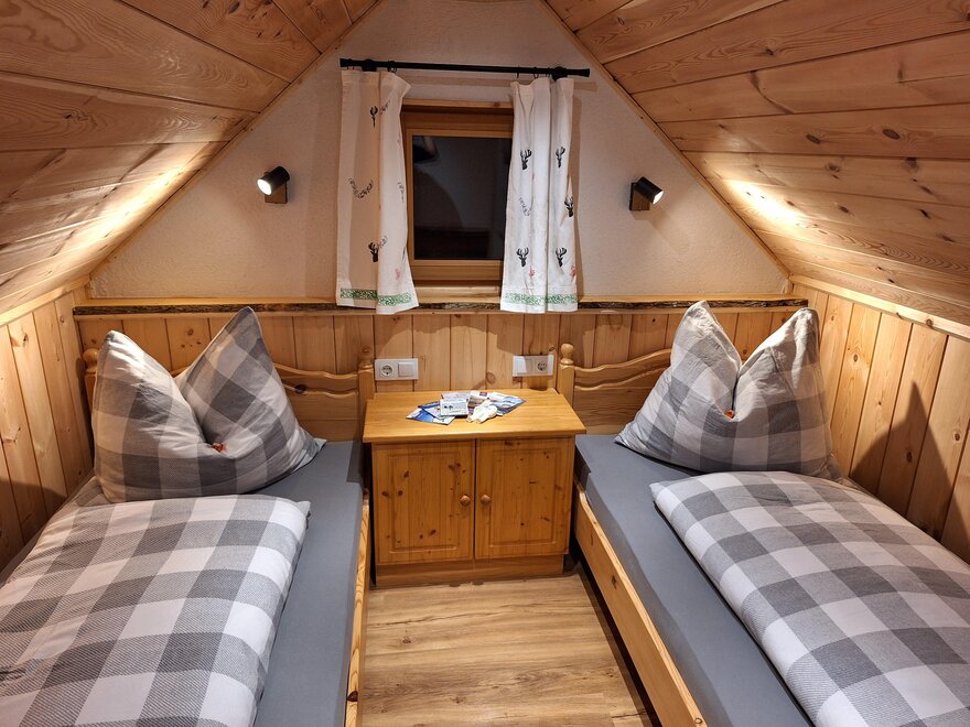 Náš Troadkasten nabízí místo pro 4 osoby a obsahuje spací místnost se 2 lůžky, plně vybavenou obytnou kuchyni, skladovací prostor a sprchu a WC. Z lavičky venku máte úžasný výhled na údolí a okolní hory.