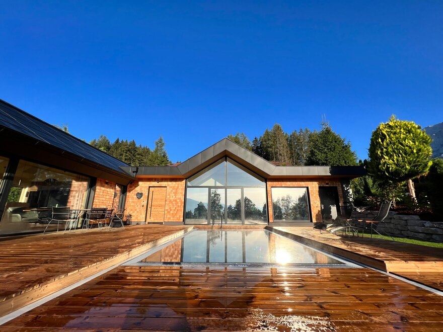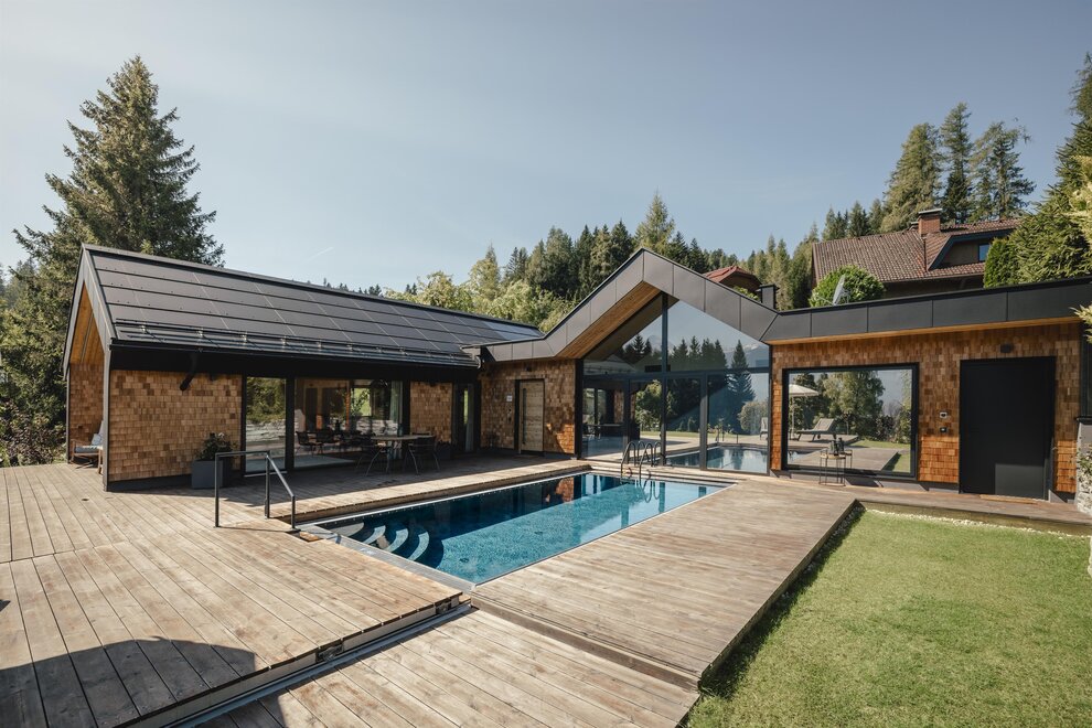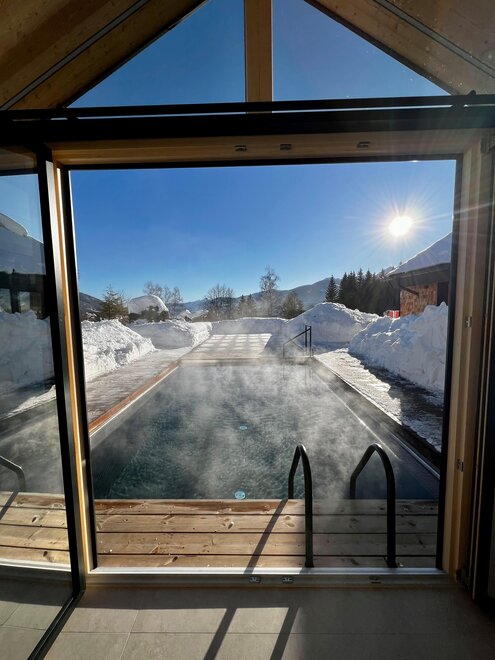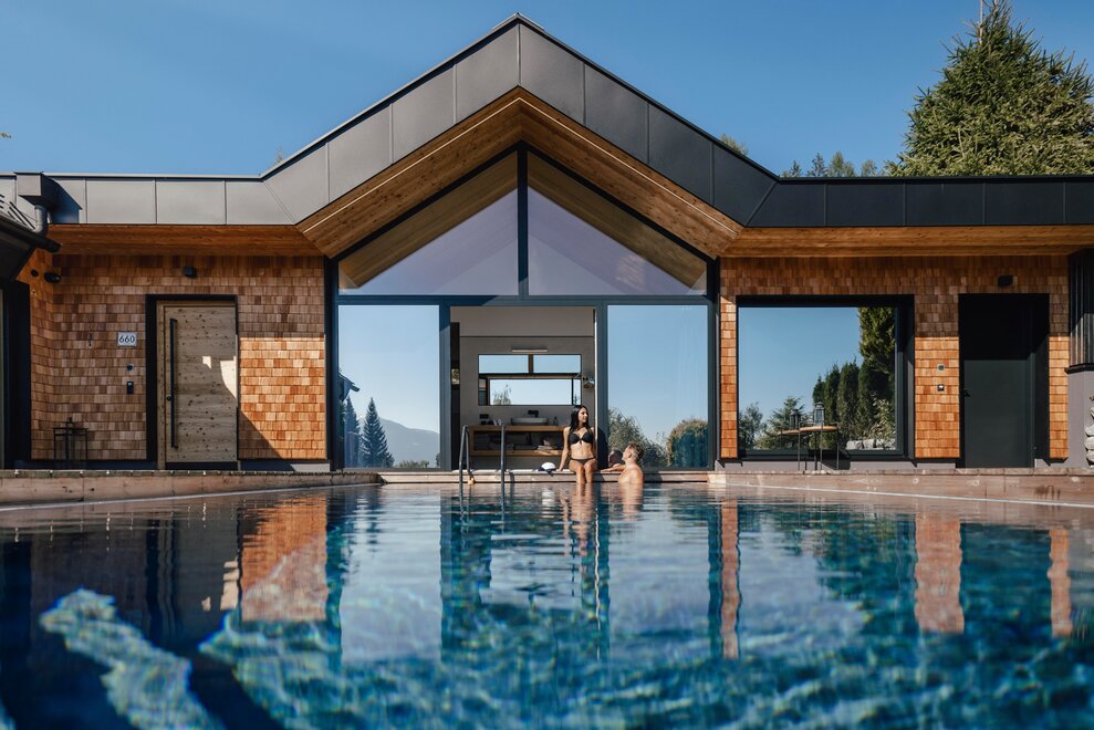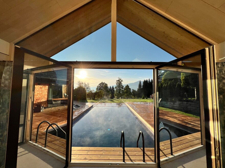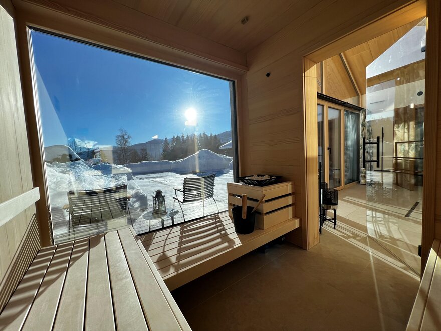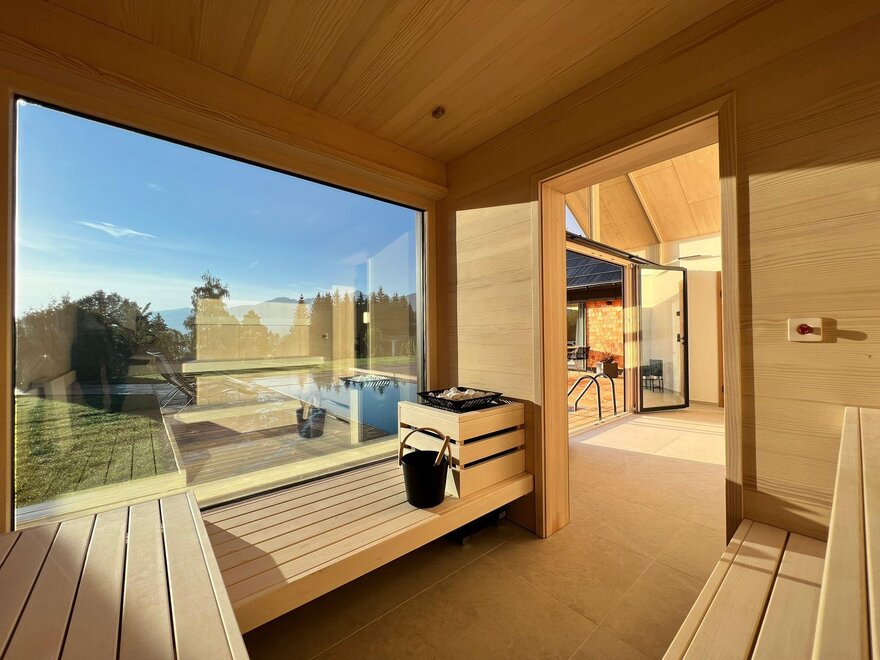 Klid a soukromí v luxusním, NOVÉM prémiovém 5hvězdičkovém chatu Annelies s exkluzivním celoročním vyhřívaným nekonečným bazénem místo malého vířivého bazénu a soukromou panoramatickou saunou – přesto nejste osamoceni, protože vám je samozřejmě plně k dispozici veškerý luxus Annelies!