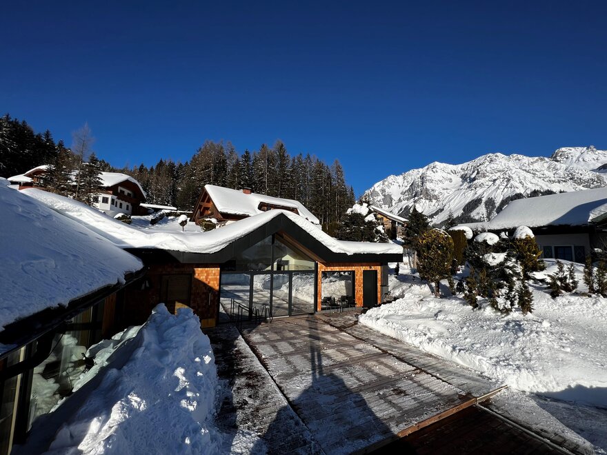 Užijte si skvělý výhled na Schladminger Tauern a Dachstein z terasy. Vzhledem k výjimečné poloze Ramsau am Dachstein si za krásného počasí můžete užívat hřejivých slunečních paprsků od rána až do večera.