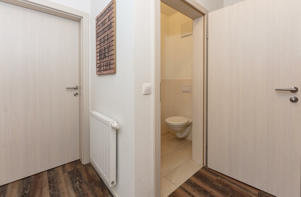počet toalet: 1, počet koupelen: 1, oddělené WC, tekoucí studená/teplá voda, umyvadlo, sprcha