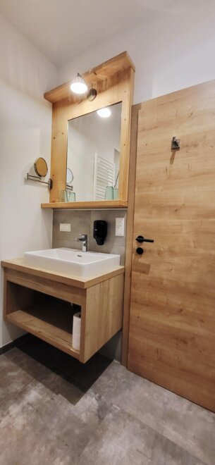 Dvě moderní koupelny se sprchou a WC a také soukromá sauna zajišťují zvláštní komfort a dokonalou relaxaci – perfektní pro odpočinek po náročném dni v horách a načerpání nové energie.