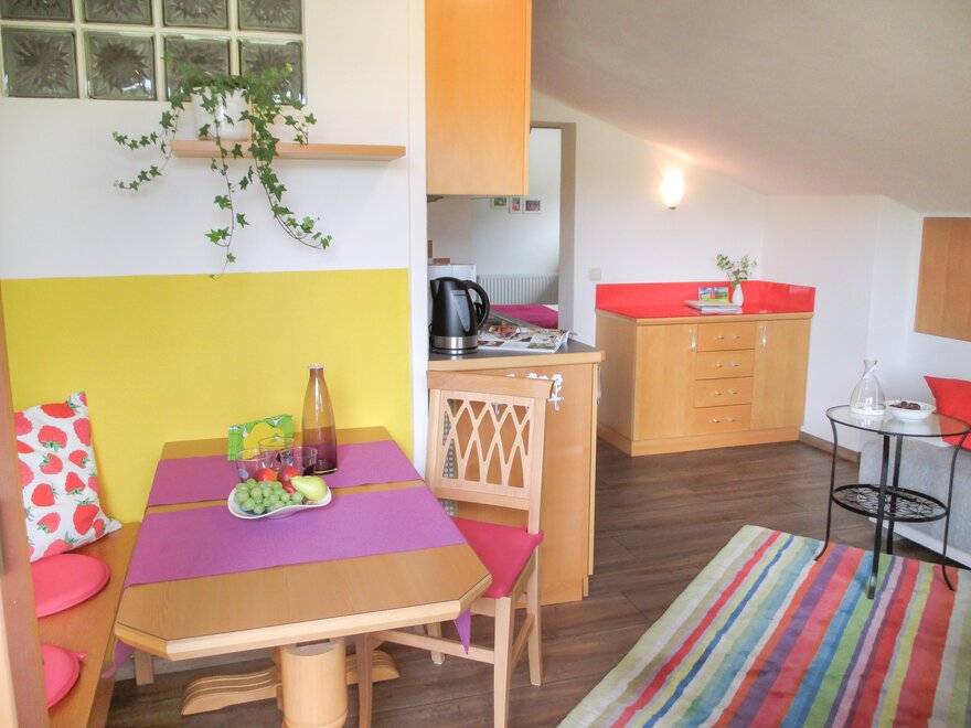 Náš dům Panorama, vaše adresa pro příjemný pobyt na nezapomenutelnou dovolenou v harmonii a útulnosti. Všechny 3 apartmány od 35m² do 45m² vás vítají barevnými a moderními prvky bydlení. Přímo před naším domem, na slunné náhorní plošině Ramsau am Dachstein, máte skutečně krásný ráj na běžky a 70 km rozsáhlou síť zimních turistických tras s útulnými chatami a selskými staveními na dosah ruky. Bezplatný skibus vás rychle a pohodlně zaveze k nejbližšímu lyžařskému vleku v rodinném lyžařském oblasti Ramsau, k dolní stanici Dachstein Gletscher Bahn nebo do Schladmingu do lyžařského areálu 4 hory Skischaukel. Zažijte také rozsáhlou letní nabídku s kartou Schladming Dachstein Sommercard od konce května do poloviny října. Užijte si více než 100 volnočasových atrakcí v naší dovolené oblasti Schladming, Dachstein a Ramsau. Každý apartmán je zcela individuální, s velkou láskou zařízený a pojmenovaný podle určitého druhu dřeva, jako je jilm, buk a starobylý smrk. Na přání vám rádi každý den ráno přineseme čerstvé pečivo do vašeho apartmánu. Ať už v létě nebo v zimě, být sportovně aktivní a vdechovat nádherný čerstvý horský vzduch. Ramsau am Dachstein nabízí po celý rok rozsáhlou nabídku relaxačních, sportovních a volnočasových aktivit pro každého. Procházky a běžkování na 18 km dlouhé náhorní plošině, turistika v oblasti alpských pastvin Ramsauer ve výšce 1600 metrů nebo horské a lyžařské túry na Dachsteinu ve výšce 2700 metrů nad mořem. Strávte svou dovolenou na 3 úrovních v zeleném srdci Rakouska. Helga a Josef s Adrianem a Julianem se již velmi těší na vaši návštěvu v domě Panorama!