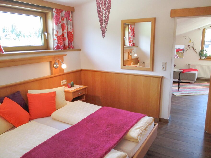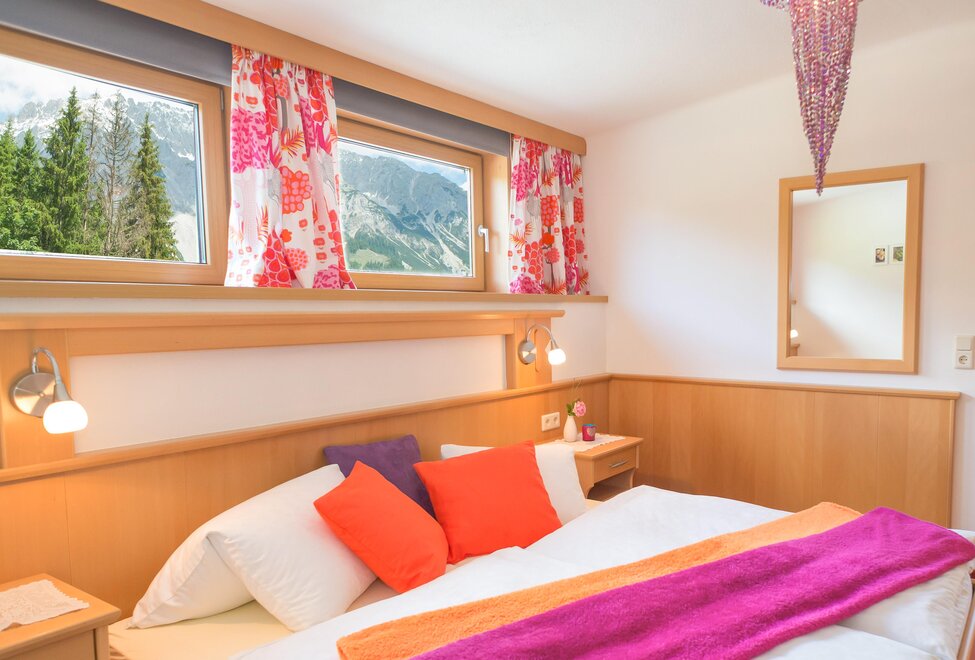 - Ložnice s výhledem na naše masiv Dachstein, také místo pro dětskou nebo juniorskou postel