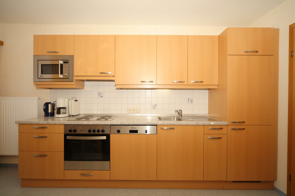 prostorný apartmán se jednou ložnicí, obývací kuchyní s rozkládací pohovkou, sprchou/WC, balkónem a kabelovou televizí.