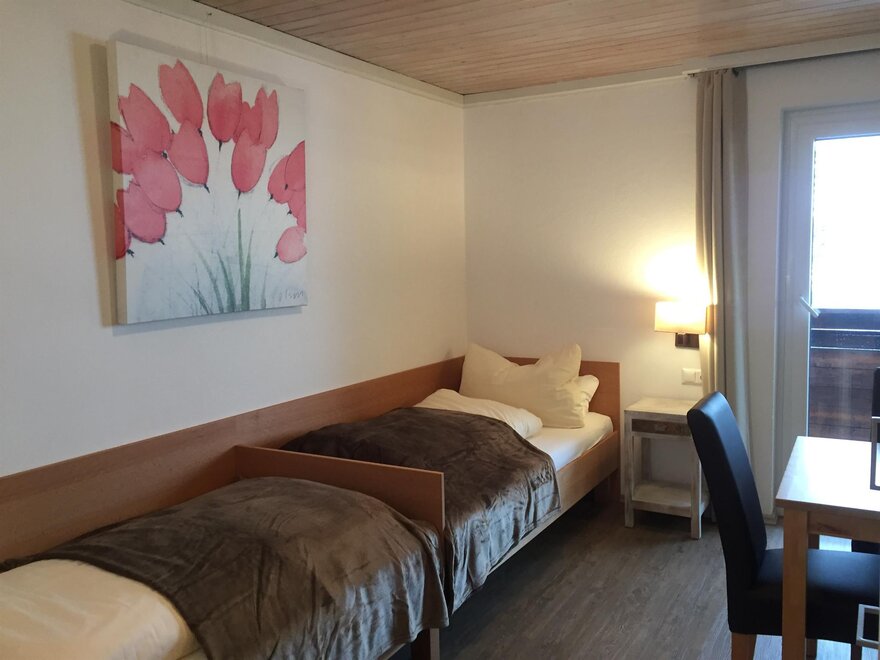 14 metrů čtverečních se 2 oddělenými postelemi dlouhými 1,90 metru WC, sprcha, umyvadlo Bezplatné Wi-Fi, bezplatná zimní karta a letní karta Jižní balkon pro maximálně 2 osoby