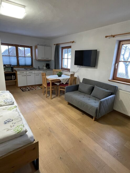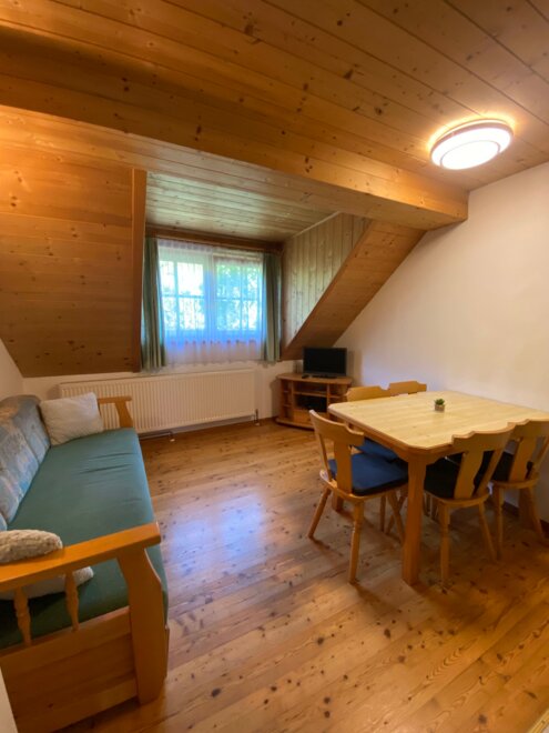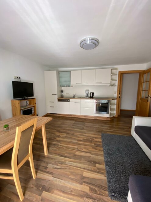 Jednopokojový apartmán Hausleitn je vybaven moderním kuchyňským koutem a má koupelnu s WC, která je vybavena podlahovým topením pro větší komfort. Součástí vybavení je také televize, mikrovlnná trouba, mini trouba a jídelní stůl, který poskytuje dostatek místa pro jídlo.