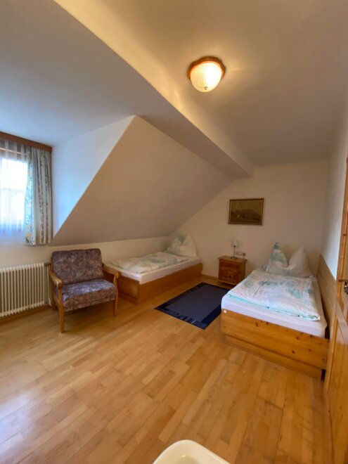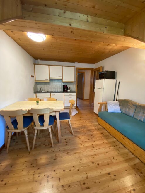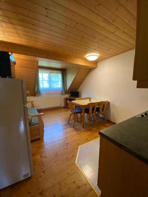 1 dvoulůžkový pokoj (buď se 2 jednotlivými postelemi nebo také sestavitelný), 1 třílůžkový pokoj (dvoulůžko a jednolůžko), kuchyňský kout, koupelna a extra WC, vybavený také podlahovým topením