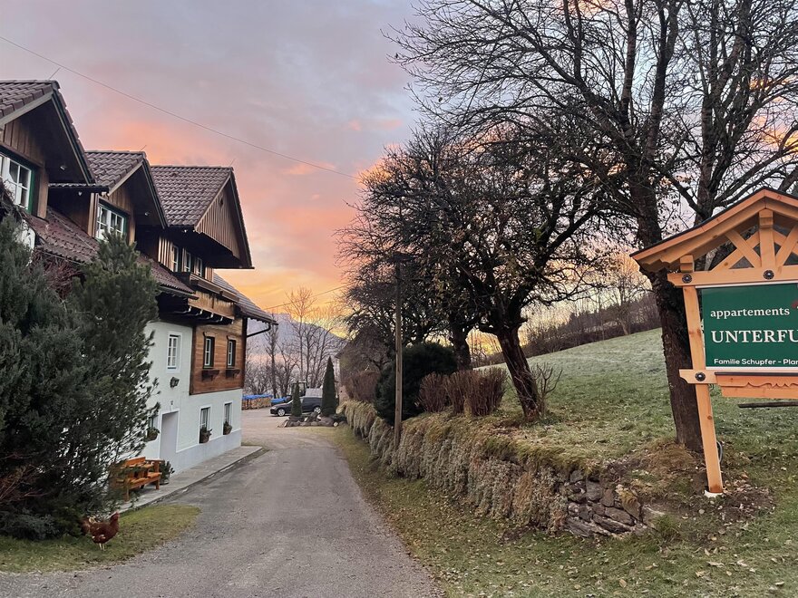 Příjezd z B 320, vjezd do Planaistrasse. cca 600 m rovně - poslední statek po levé straně je náš penzion Unterfuchs. Check-in od 14:00 Check-out do 10:00