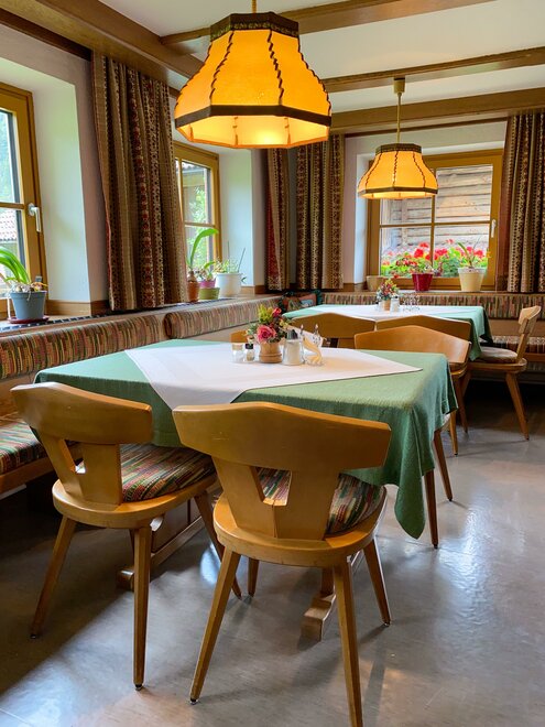 Začněte svůj den na pestrém snídani formou bufetu v naší útulné selském pokoji s kachlovými kamny. Zde vás hýčkáme produkty z vlastní kuchyně, zahrady a zemědělství. Hosté apartmánu si rádi mohou přikoupit snídani.