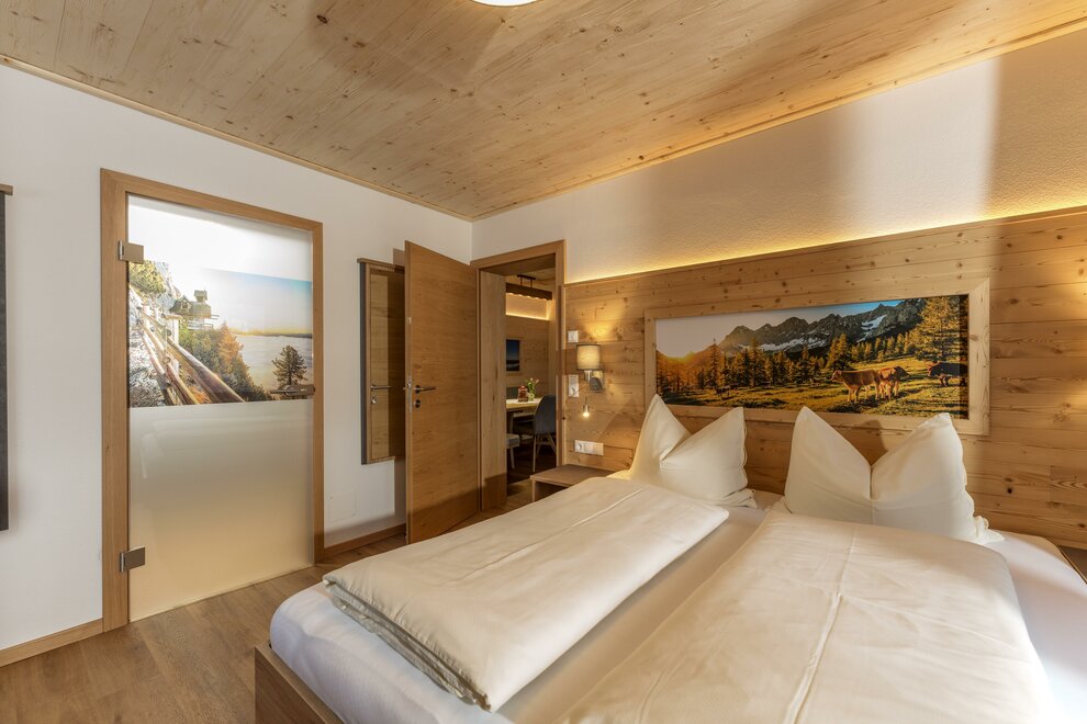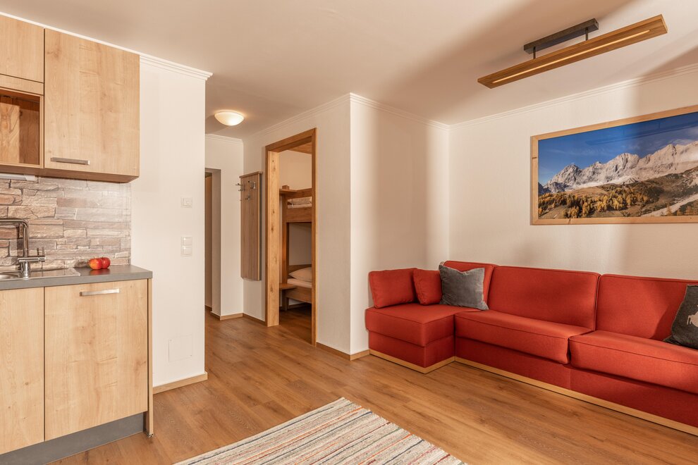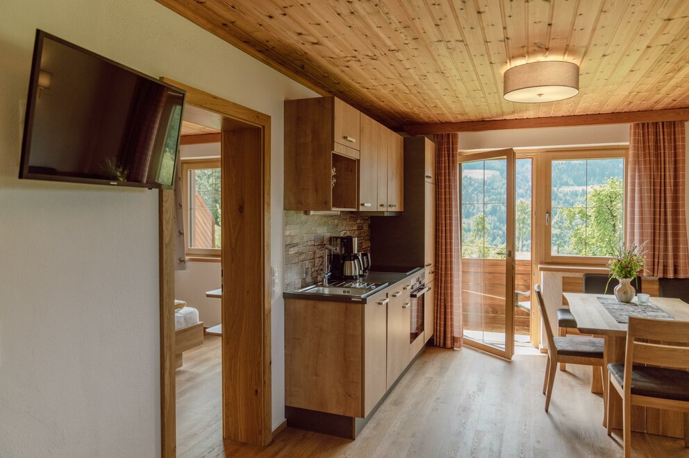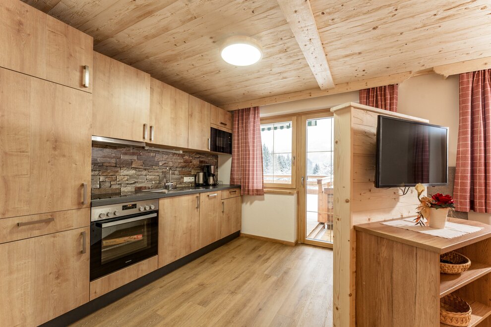 Apartmán C - Balkon s nádherným výhledem, ložnice (možnost přidat další ložnici s vlastní koupelnou), rozkládací pohovka pro 2 osoby, televize v ložnici a kuchyni, sprcha, WC a W-LAN. Tento byt nabízí příjemný domov v horách pro až 4 osoby. Ideální např. pro mladou rodinu.