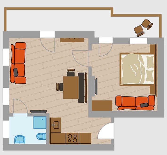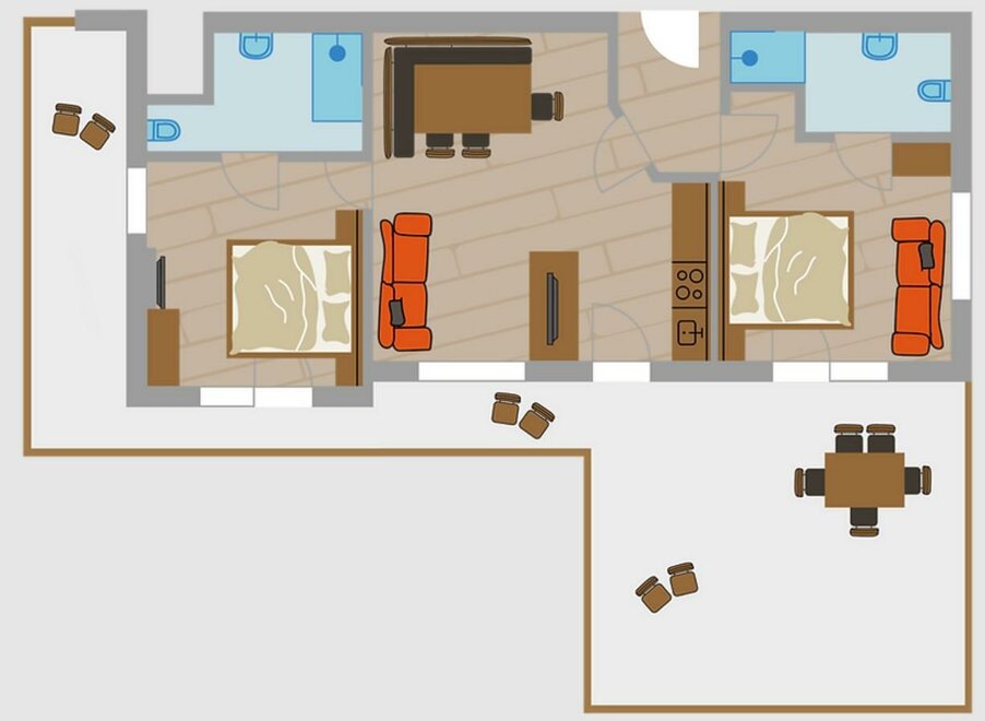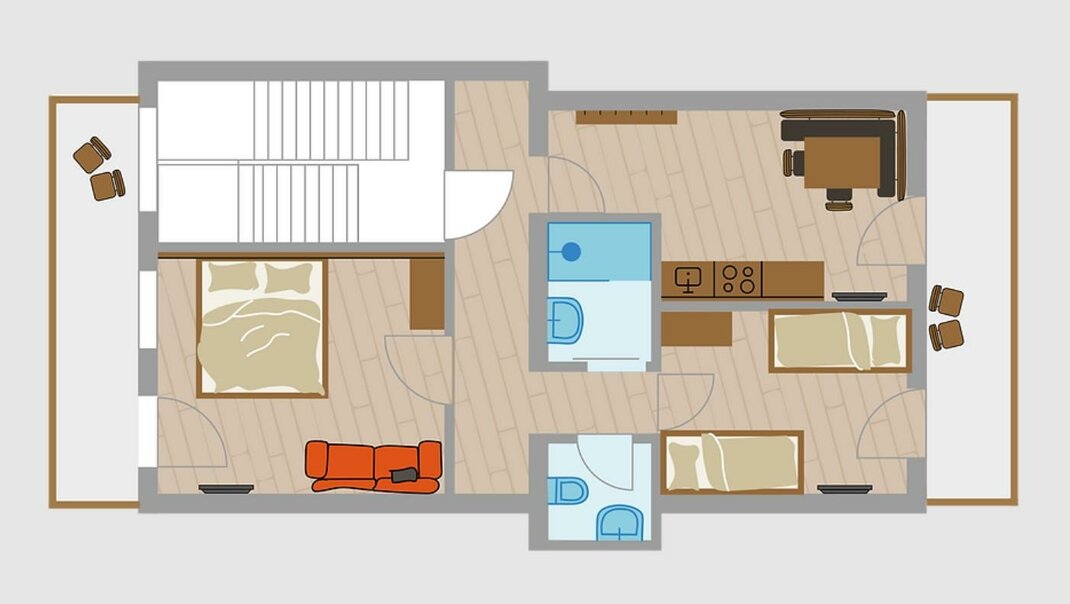 Velikost 42 m² Obsazení 1 - 5 dospělí , 0 - 4 děti Pokoje 2 Ložnice 1 Podrobnosti o pokoji