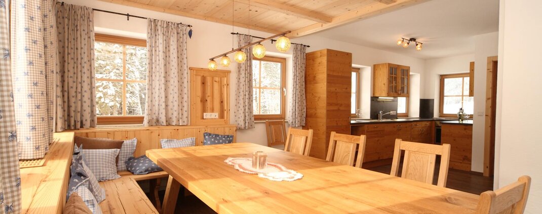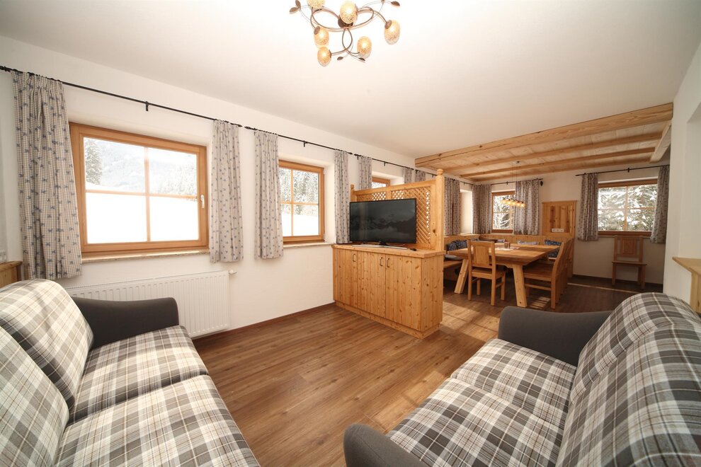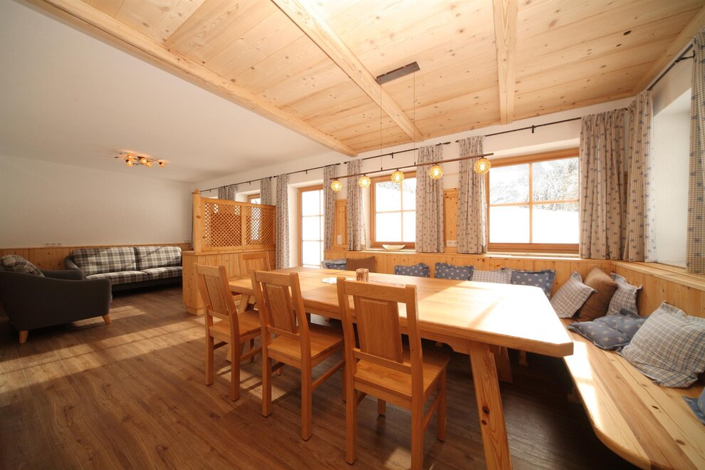 Na obytné ploše 200 m² se nachází velká kuchyňská obytná část se jižní terasou a výhledem na Schladminger Tauern, dvě dvoulůžkové pokoje, třílůžkový pokoj a na podkroví ložnice pro 3 osoby, dvě koupelny a 2 samostatné WC. Dva dvoulůžkové pokoje mají jižní balkon.
