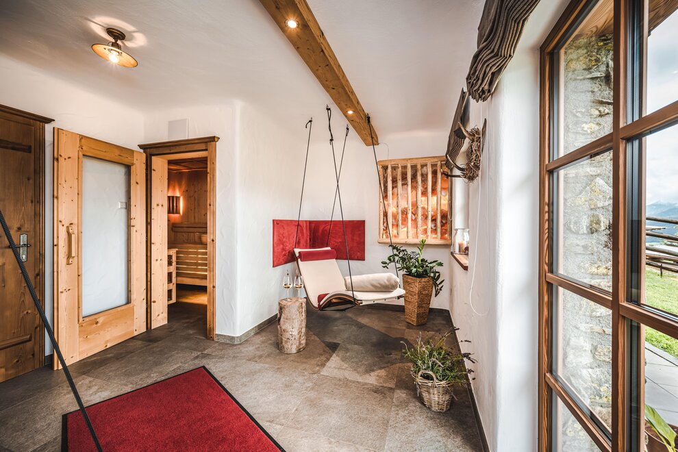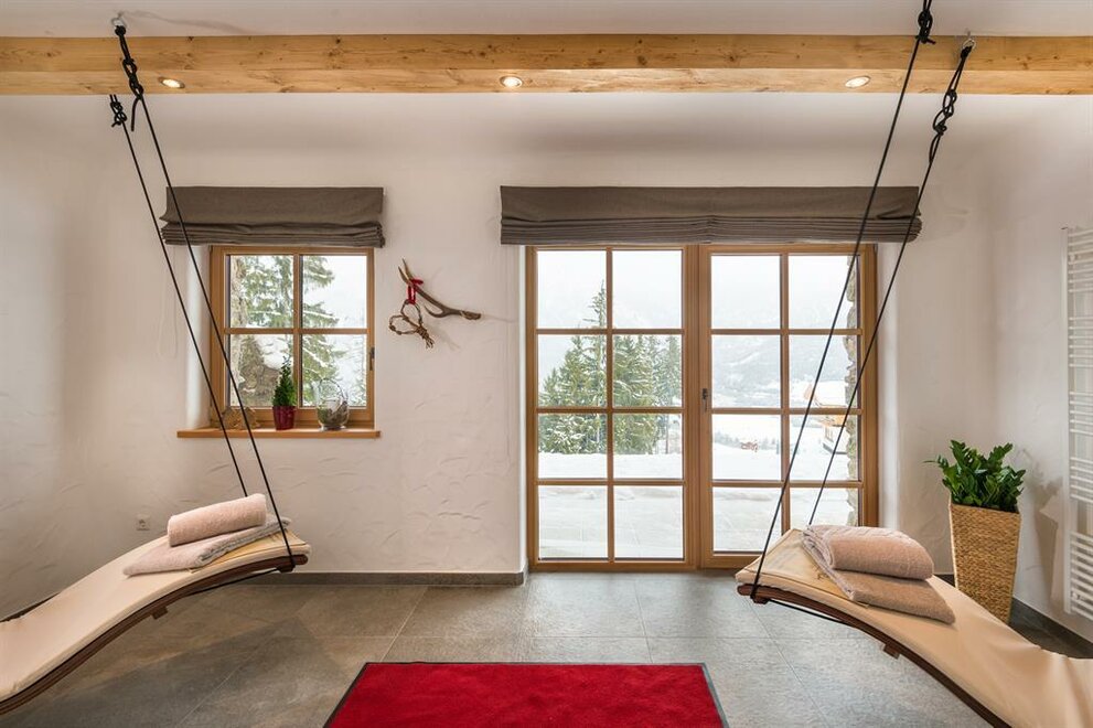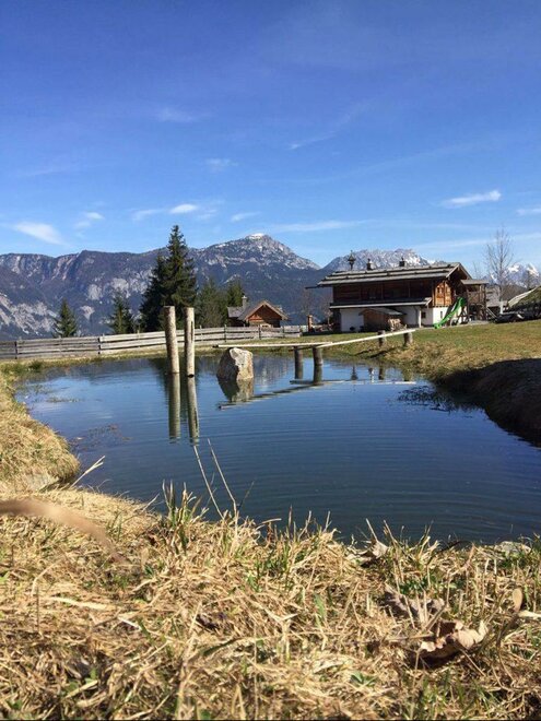 - Almwellness s heusaunou, zavěšenými postelemi, wellness sprchami & přírodním koupacím rybníkem