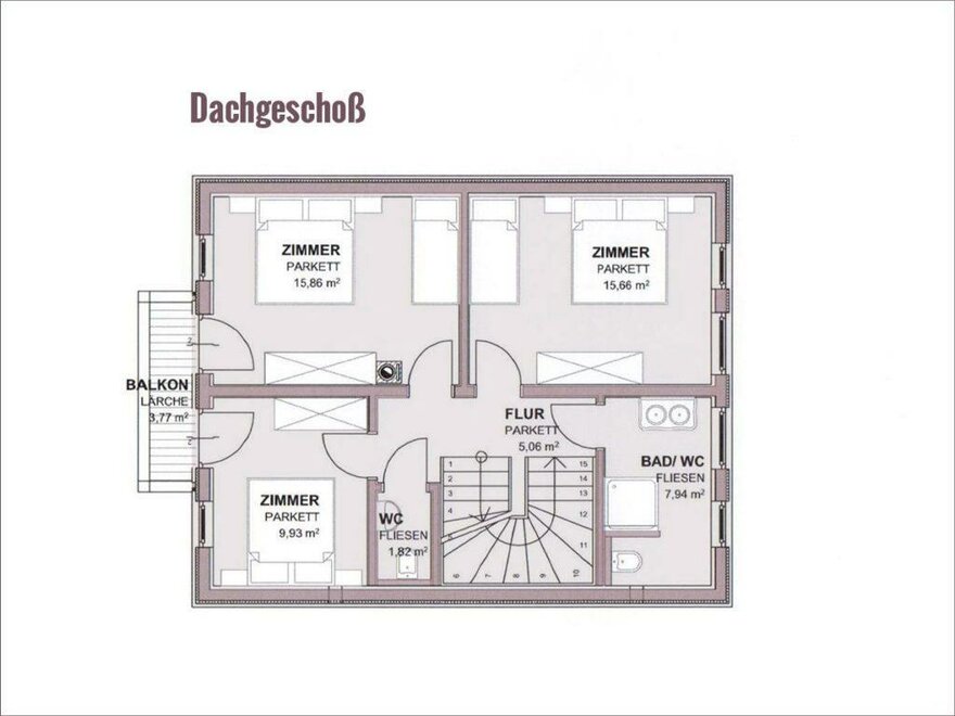 - Podkroví: 1 třílůžkový pokoj se vlastní koupelnou, 1 samostatné WC,