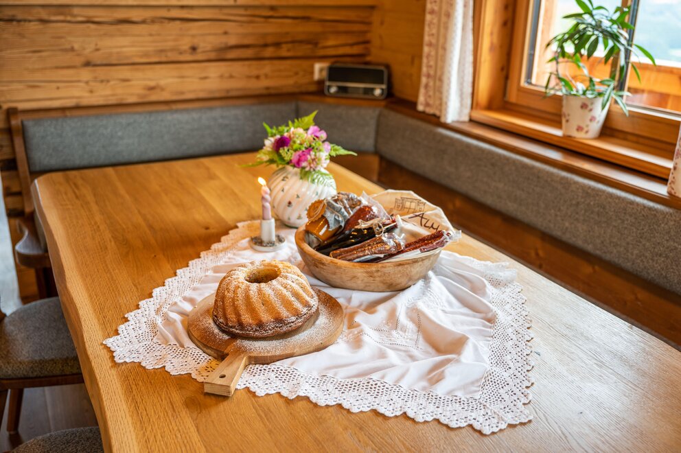 - Almjausenkorb plný regionálních produktů při vašem příjezdu