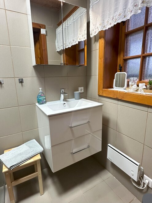TV, hasicí přístroj, předsíň, jídelna, lednice, toustovač, Größe m²: 75, kuchyňský kout, digestoř, kuchyňské nádobí, kuchyň, domácí zvířata nedovolena, přikrývky, salonek, zahrada, nekuřácký pokoj, oddělený obýv./ložnice, kachlová kamna, povlečení k dispozici, nádobí k dispozici, žehlička, vestavěná kuchyň, dlažba nebo mramorová podlaha, detektor kouře, sauna, rádio, pračka, mrazicí box, satelitní TV, WiFi, elektrický krb, myčka nádobí, obytná kuchyň, trouba, skříň, ručníky k dispozici, varná konvice, zásuvka u postele, prostírání a prádlo do kuchyně, topení, vlasový fén, sušič, kávovar, zahradní nábytek, základy (Ručníky, povlečení, mýdlo a toaletní papír), zahradní gril, kabelová TV, private entry, využití pračky, kamna na dřevo