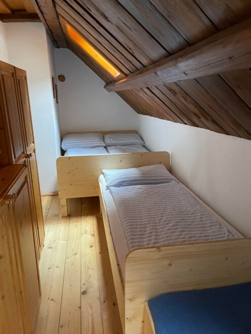 2 ložnice, koupelna, WC a úložný prostor v patře