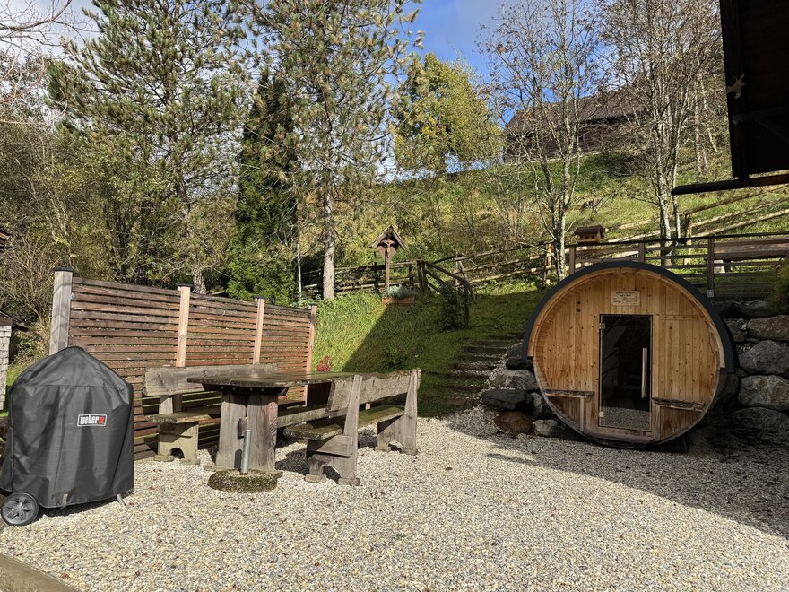V teplých měsících zve nádherně upravený venkovní prostor k pozorování jedinečného horského panoramatu během grilování a potůčku, který protéká pozemkem, což umožňuje odpočinek těla, mysli a duše.