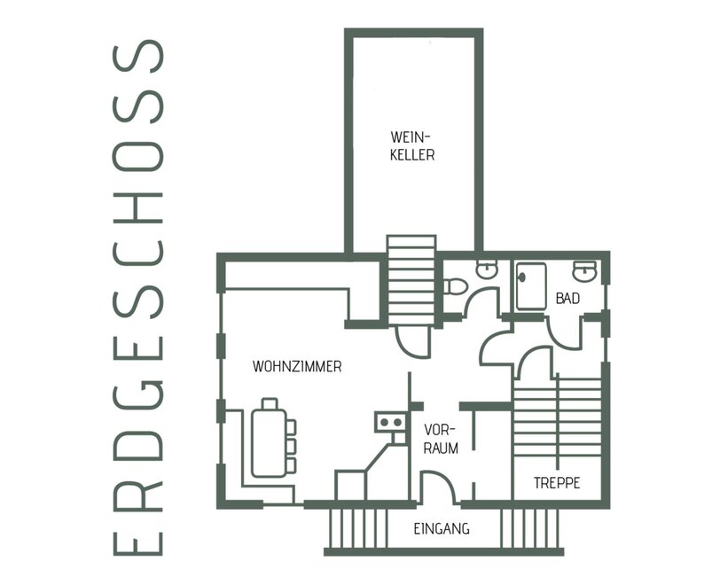 Vstupní prostor, obývací pokoj s kuchyňským koutem, vinný sklípek, koupelna, WC a skladovací prostor v přízemí