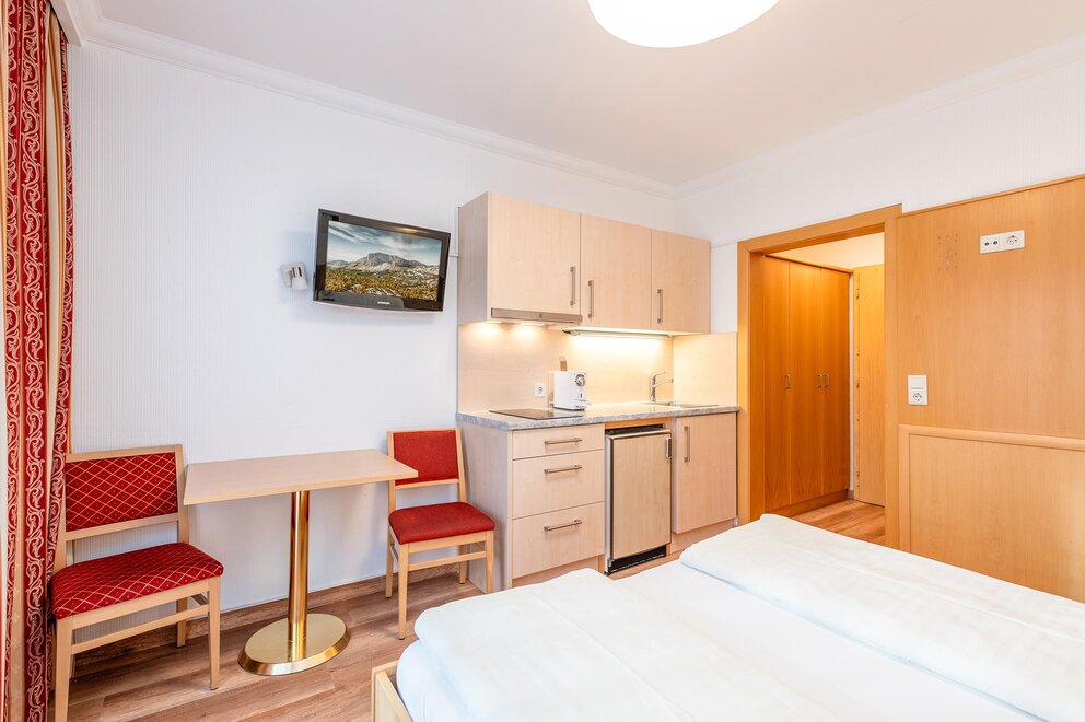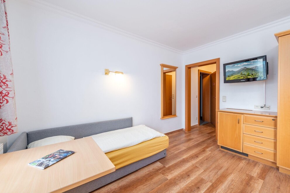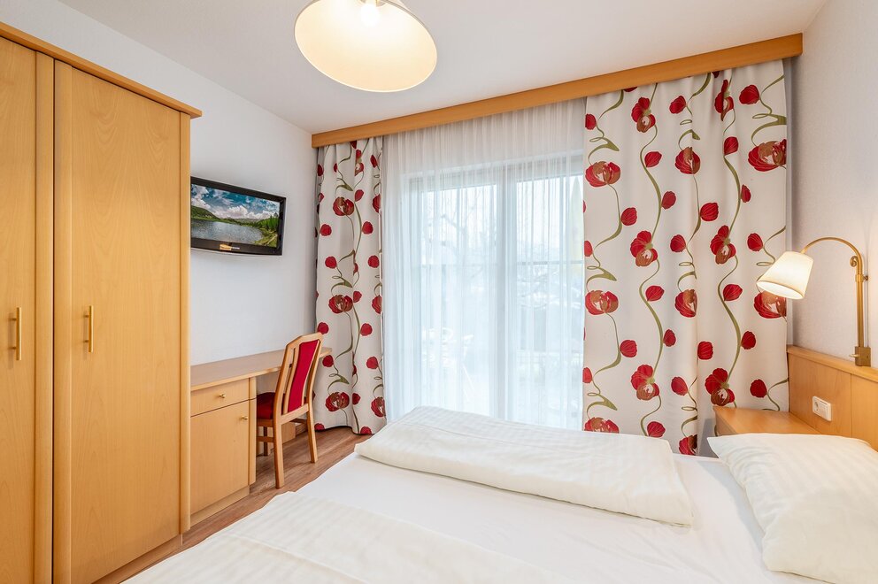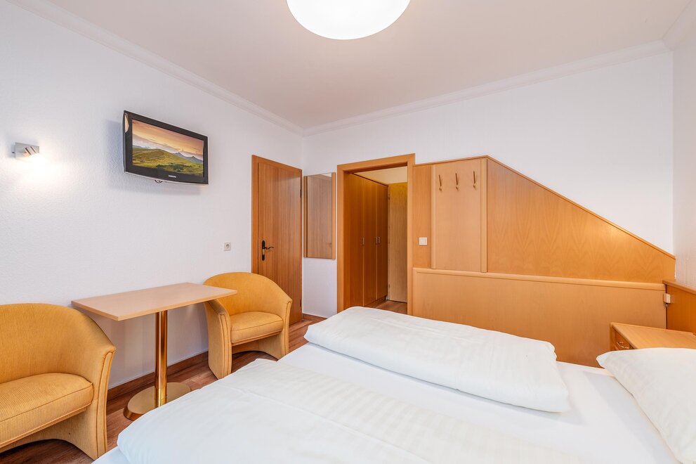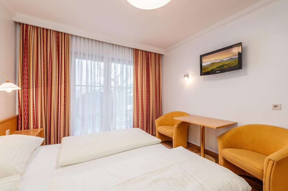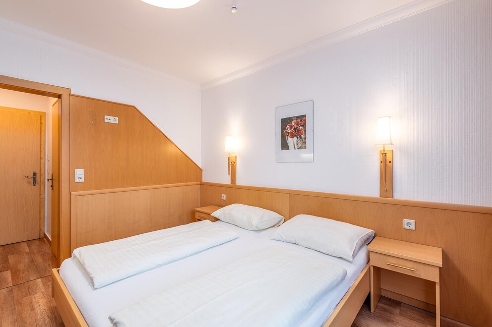 - Snídaně v sousední restauraci: Snídaně je zahrnuta ve všech rezervacích jednolůžkového pokoje (EZ), dvoulůžkového pokoje (DZ), třílůžkového pokoje (3BZ) a čtyřlůžkového pokoje (4BZ). Při pobytu v apartmánu je možné snídani si objednat předem nebo na místě za 15€ – podrobnosti obdržíte s potvrzením rezervace. Večeře à la carte je také možná.