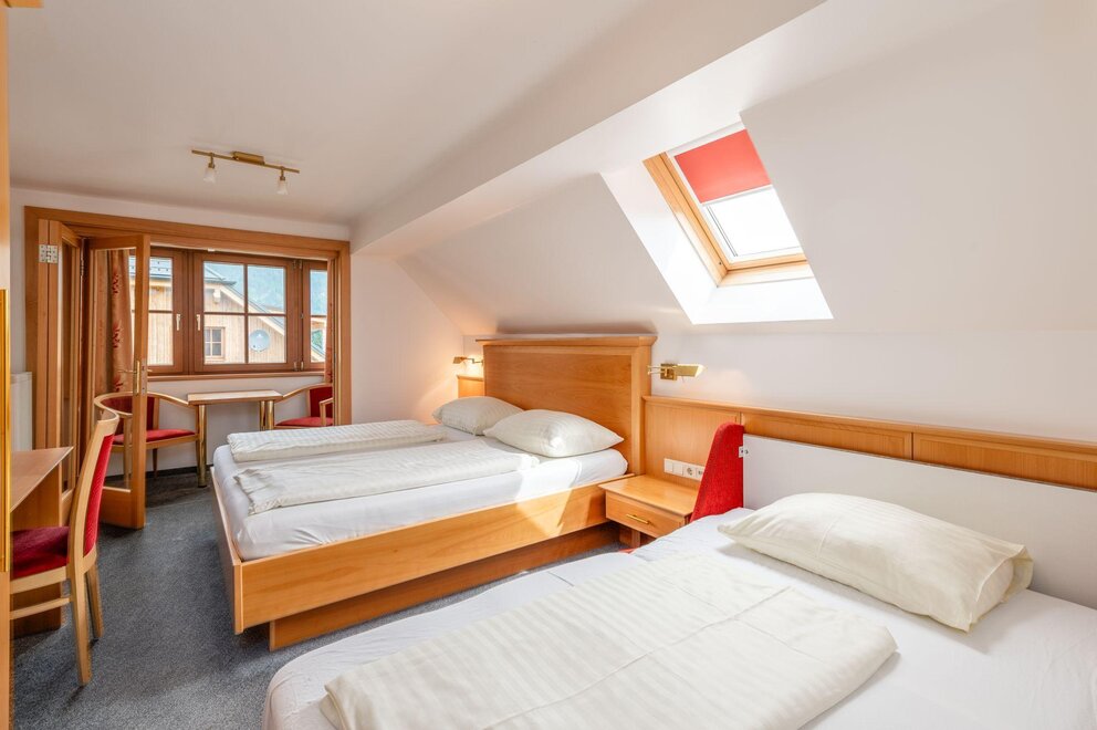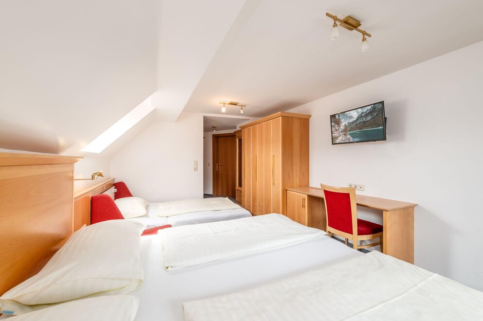 Naše třílůžkové pokoje jsou vybaveny manželskou postelí a jednolůžkem. Všechny pokoje navíc mají balkon nebo terasu.