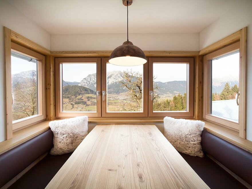 Vychutnejte si příjemnou atmosféru s ohromujícím výhledem na Ennstalskou dolinu, zatímco vaříte nebo společně sedíte u stolu a užíváte si dobrou láhev vína. V přilehlé místnosti ze smrkového dřeva se skvěle odpočívá. Ranní slunce vás probudí s výhledem na Grimming a přináší radost do vašeho vstávání.