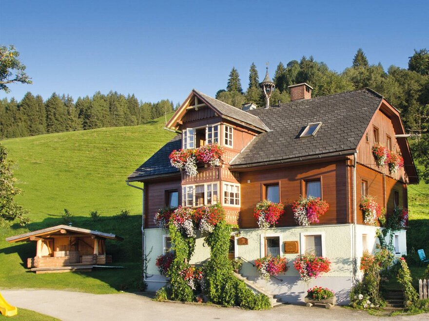 Náš biofarma Ringlerhof se nachází v nadmořské výšce 950 m v srdci turistické oblasti Schladming-Dachstein na Michaelerbergu u Gröbmingu. Ohromující klidná vyhlídka nejen přitahuje naše hosty, ale také je vždy znovu okouzlí. Zažívání přírody a původnosti, stejně jako kontakt se zvířaty, přináší zejména našim malým hostům nezapomenutelné momenty. Ringlerhof se vyznačuje zejména snídaní s produkty převážně z vlastní ekologické farmy a bohatou polopenzí, která nabízí buď tradiční, nebo lehkou kuchyni. Naše útulné pokoje v rustikálním prostředí lze rezervovat se snídaní nebo polopenzí. Všechny pokoje jsou vybaveny sprchou, WC, SAT-TV a rádiem. Po vzrušujícím dni se můžete s celou rodinou relaxovat v našem hot potu. Na naší biofarmě Ringlerhof se nikdy v létě nenudíte. Chceme našim malým hostům poskytnout hravý kontakt se zvířaty. Mohou zažít dění na farmě zblízka: dojení krav, sklizeň trávy, hledání vajec, hraní si se psem, sledování kachen při shánění potravy a návštěva ovcí na alpě dělá z farmy obrovské dobrodružné hřiště. Ať už jde o dobrodružné grilování u ohně nebo pečení chleba podle starého farmářského receptu - u nás nezůstávají žádná přání nesplněná. Jako zvláštní doplňkovou nabídku nabízíme našim hostům túru na alpy s následnou romantikou u krbu a dvěma noclehy. Prosíme vás, abyste si tuto službu rezervovali předem. Naše alpa je ideálním výchozím bodem pro mnoho dalších krásných túr. Z naší farmy můžete podniknout nádherné zimní túry s různými vzdálenostmi. Naše farma samozřejmě nabízí našim mladým hostům spoustu místa pro zimní zábavu a sněhová dobrodružství. Program zahrnuje zábavné sněhové bitvy a pečlivé stavění sněhuláků. Vstup do lyžařského areálu Schladminger 4-Berge je pouze 20 minut jízdy autem. Těšíme se, že strávíte svou dovolenou na farmě u nás na Ringlerhofu.