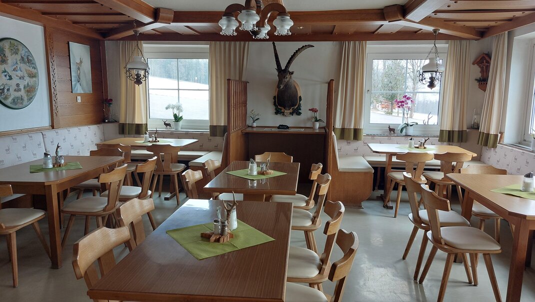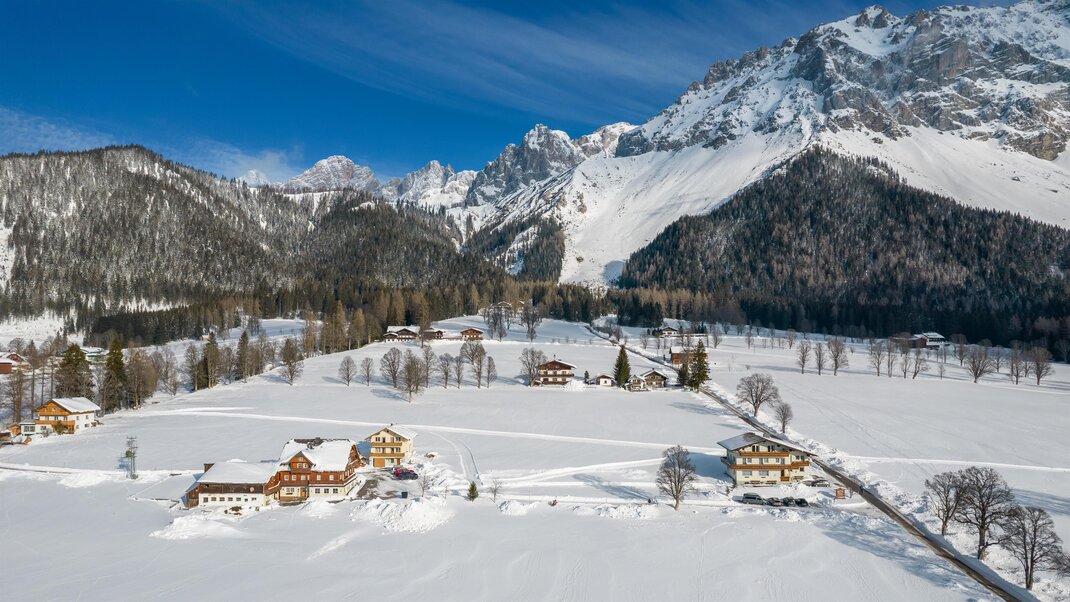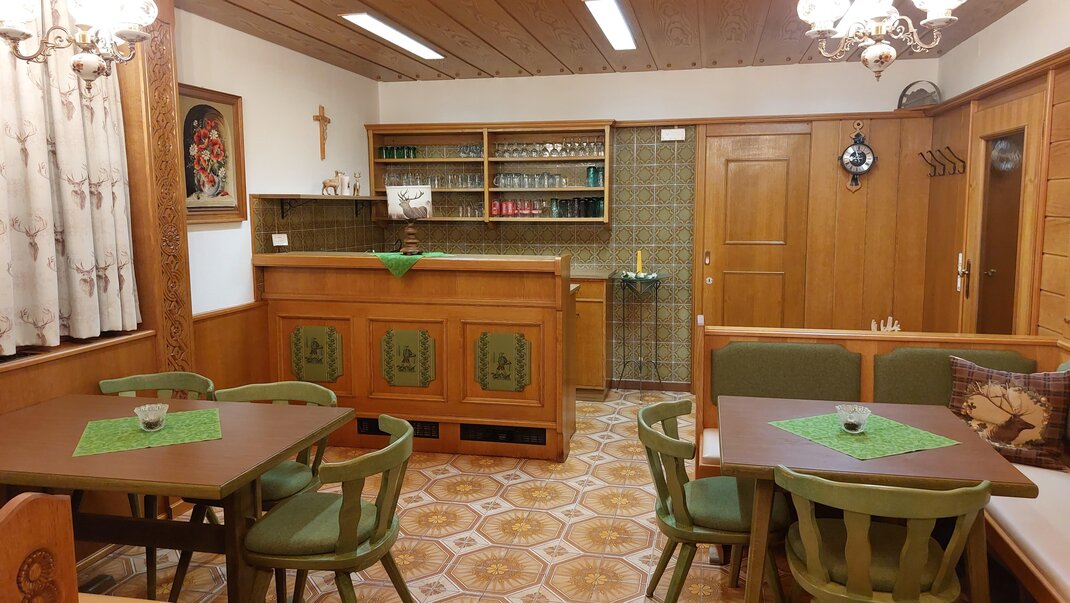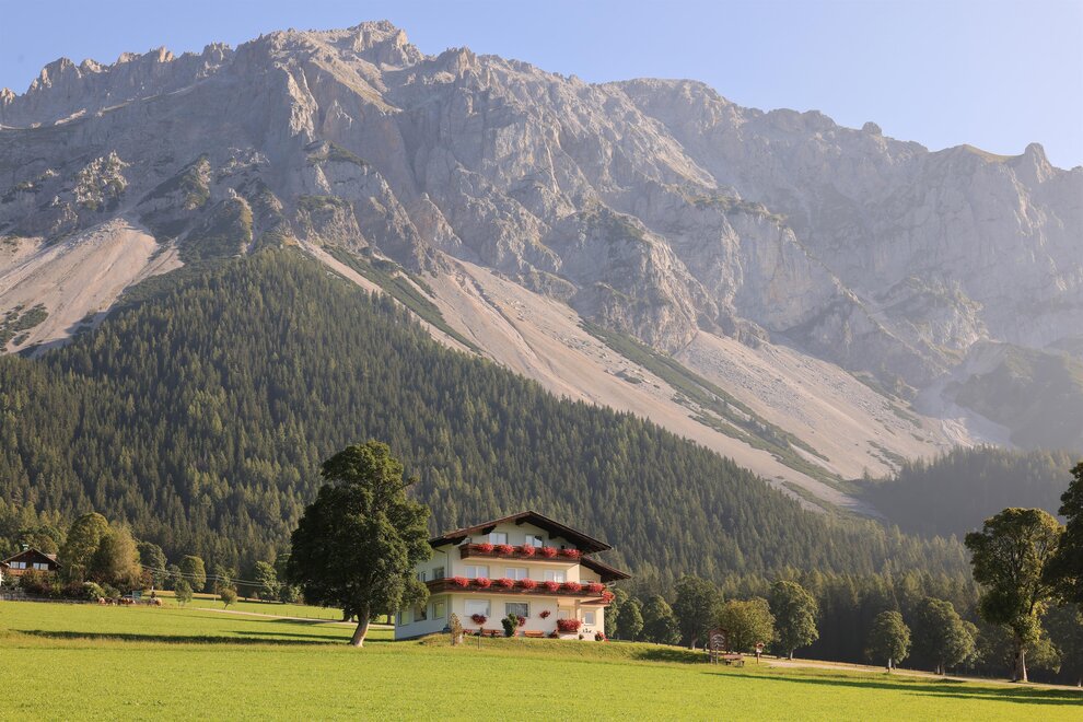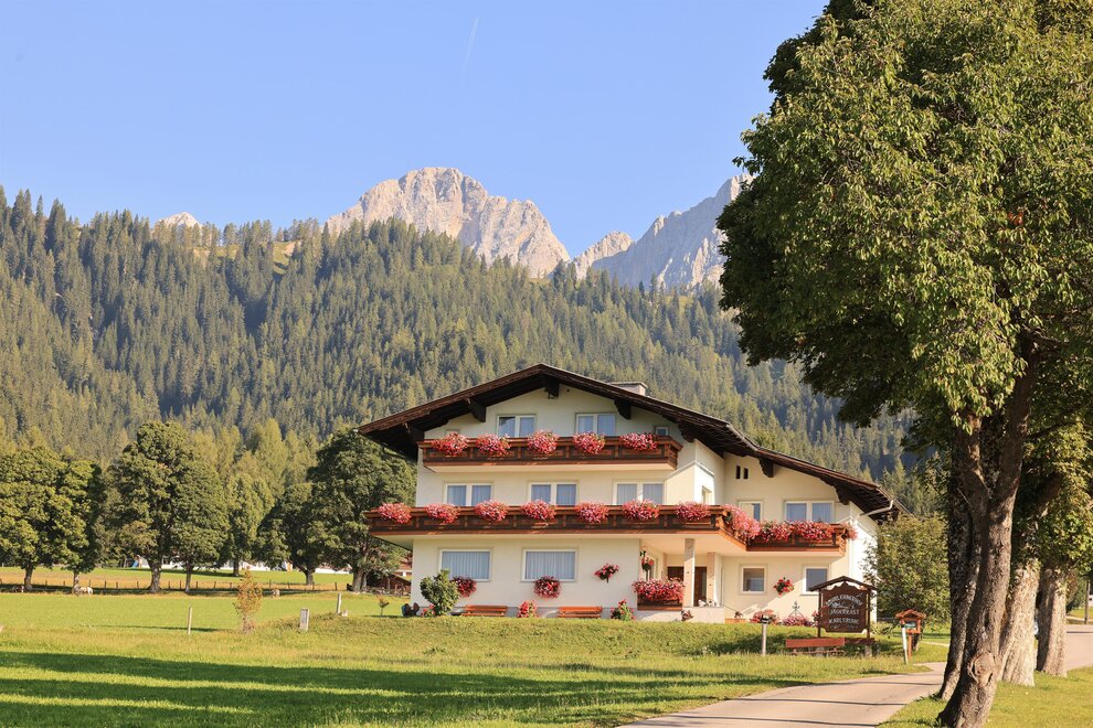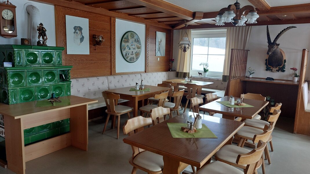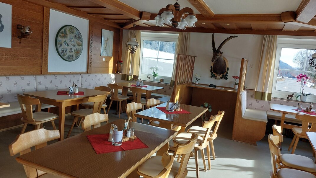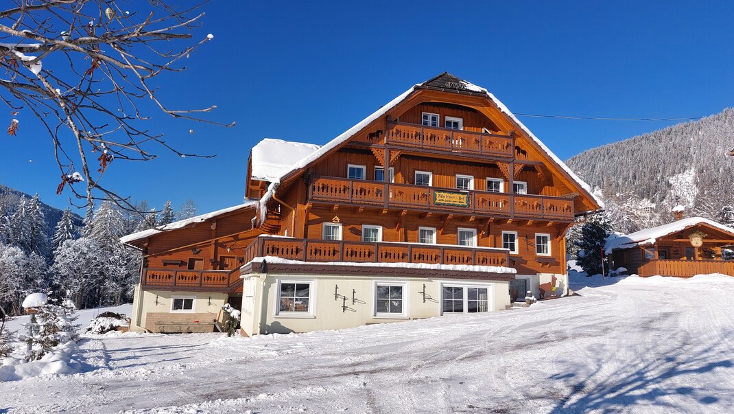 Naše pokoje jsou vybaveny sprchou, WC, satelitní TV, WLAN a některé mají balkon. V závislosti na poloze se můžete kochat výhledem na Hohe Dachstein nebo na lyžařské hory v regionu. Společensky se bavte ve velkém salonku při snídani, večeři nebo při společných hrách.