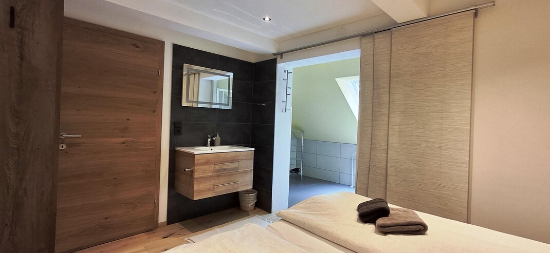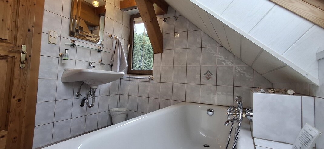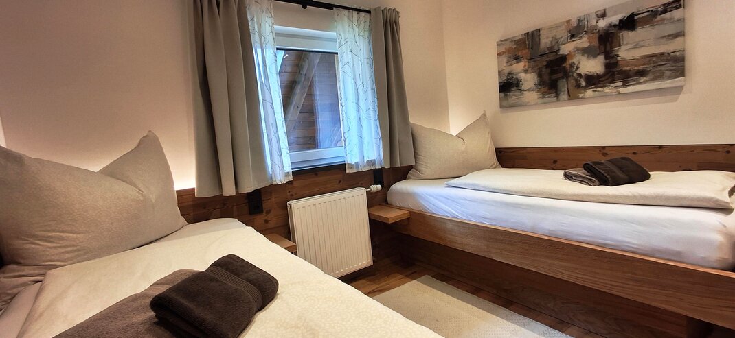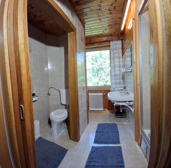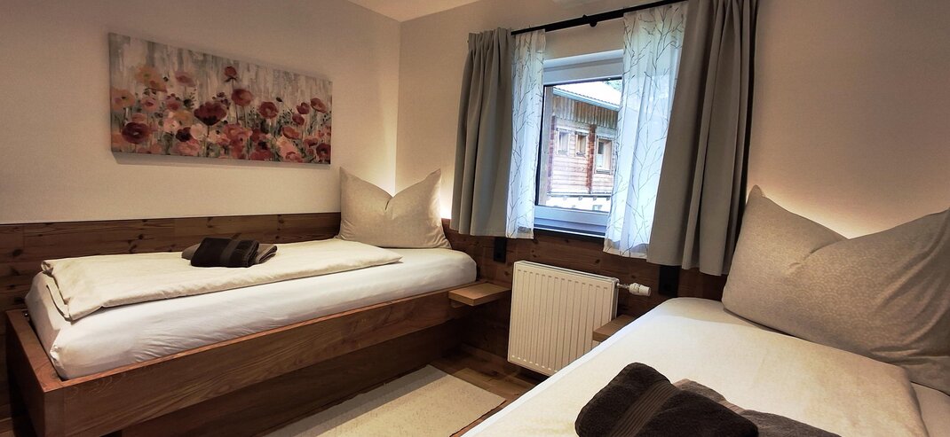 Appartement "Tauernblick" pro 4-5 osob, celková plocha 52 m². 2 ložnice a 2 koupelny. Parkovací místo přímo před domem. 1 kompletně vybavená kuchyň s jídelním koutem + 1 kuchyňský kout 2 ložnice, každá s 1 manželskou postelí a 1 jednolůžkem 2 koupelny se umyvadlem / sprchou / WC Appartement může být také rozdělen na 2 samostatné apartmány. (1 x 3 osoby, 1 x 2 osoby) Velký balkon s panoramatickým výhledem od Schladmingu přes Planai až po Nízké Taury.