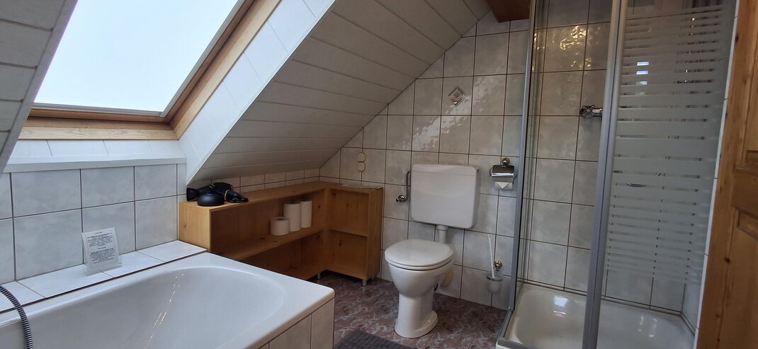 koupelna, sprcha, sprcha, WC, počet koupelen: 2, umyvadlo, koupelna, WC, počet toalet: 3, tekoucí studená/teplá voda, koupací vana, oddělené WC, toaleta na poschodí