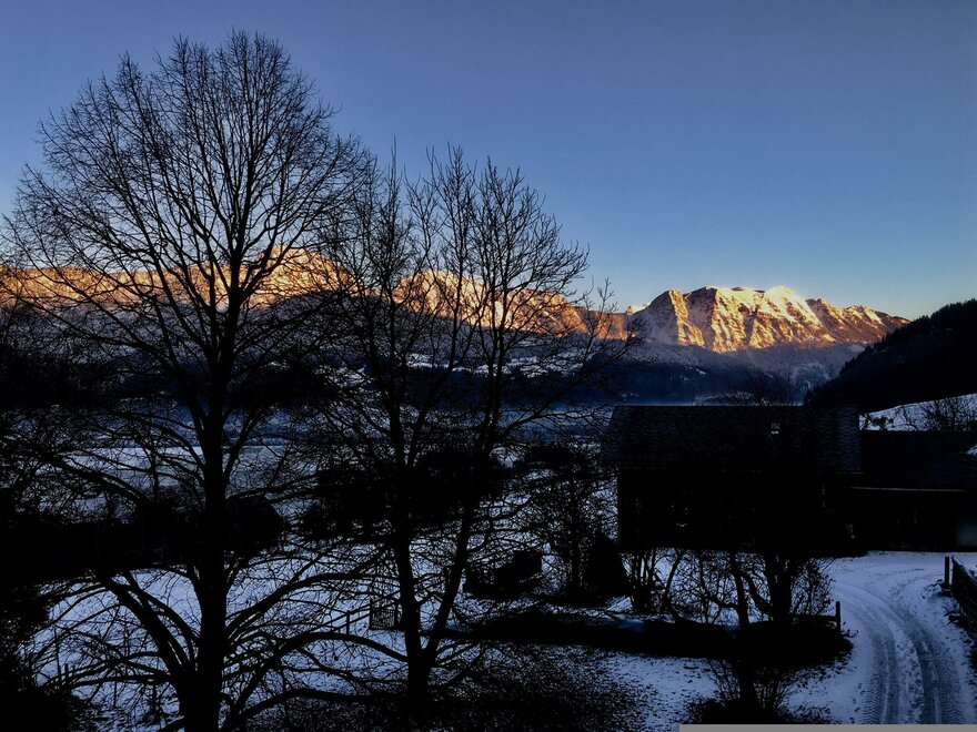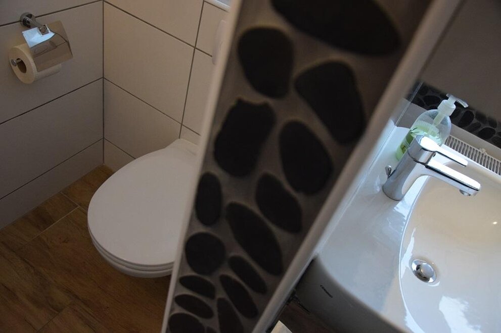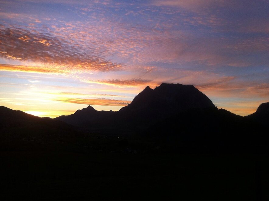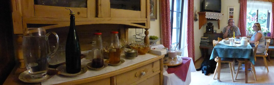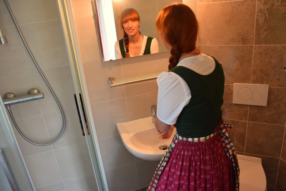 Pokoj "Morgentau" je vybaven manželskou postelí z masivního smrkového dřeva a kvalitní rozkládací pohovkou pro dva. V koupelně je sprchový kout a sušák na ručníky. Je zde samostatné WC. Z balkonu můžete pozorovat pastviny pro krávy a Grimming během krásných východů a západů slunce! WIFI je k dispozici a během fáze nočního spánku se vypíná bez vyzařování.
