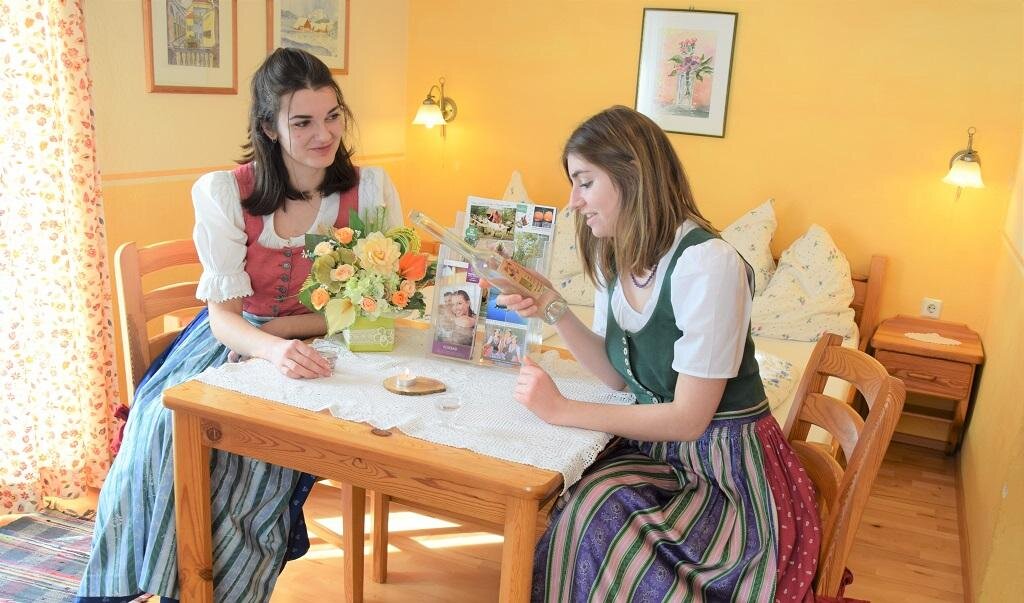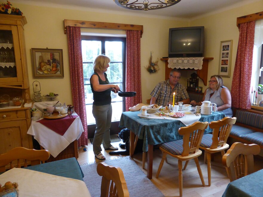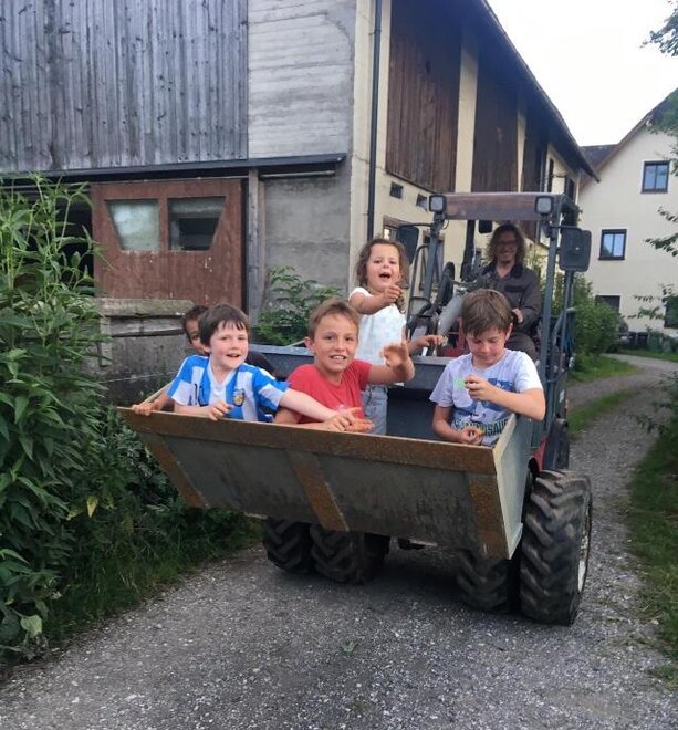 Naši hosté, zejména děti, jsou zváni, aby s námi přišli do kravína a zúčastnili se krmení, dojení, odkašlávání, úpravy, skákání sena, sběru vajec, ochutnávky čerstvého mléka atd. Dali jsme si za úkol zacházet s našimi zvířaty na stejné úrovni, přestože je chováme jako hospodářská zvířata. Proto jsme před pár lety přešli na stáj ve volném výběhu s celoročním cvičením. Zvířata jsou na pastvě od dubna do října. Naše kuřata a kachny mají vždy volný výběh. Vzniká tak zvláštní venkovská idyla, kterou naši hosté velmi oceňují.
