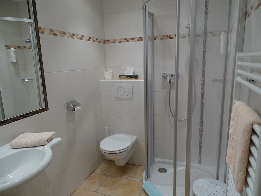 také možnost dvoulůžkového pokoje (bez snížení € 7,-- na osobu a den)Vybavení pokojů
