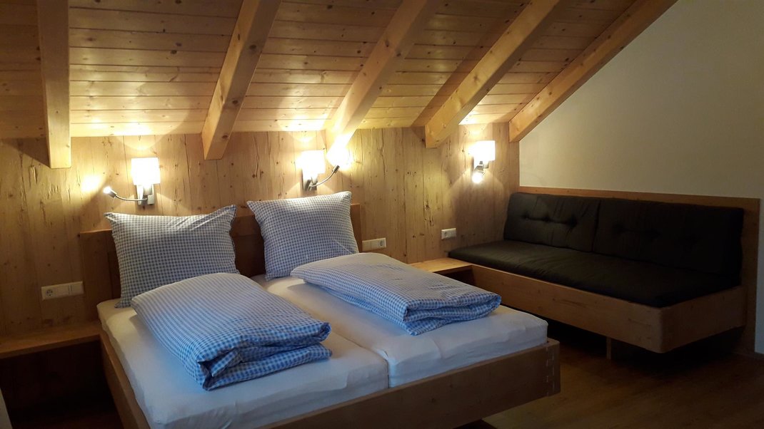 Naše prázdninové apartmá "Untertal" se nachází ve 2. patře statku a skládá se z prostorné obytné kuchyně - samozřejmě plně vybavené - se 2 oddělenými ložnicemi a 1 koupelnou. Užijte si úchvatnou panorámu na slunném jižním balkóně.