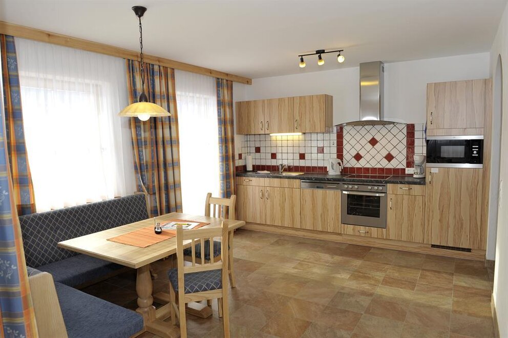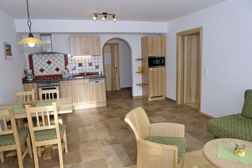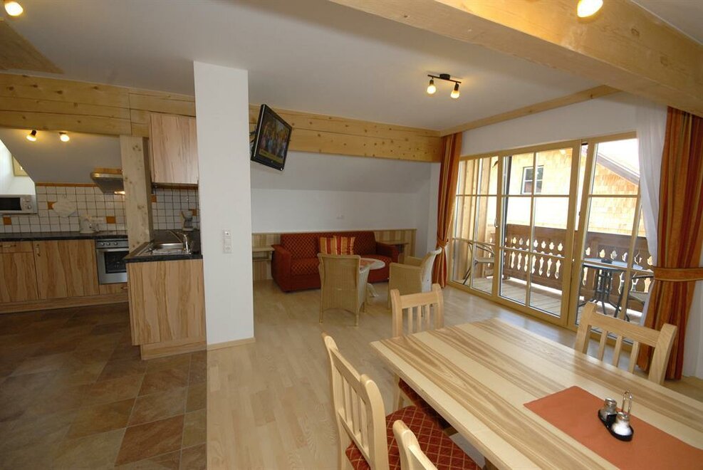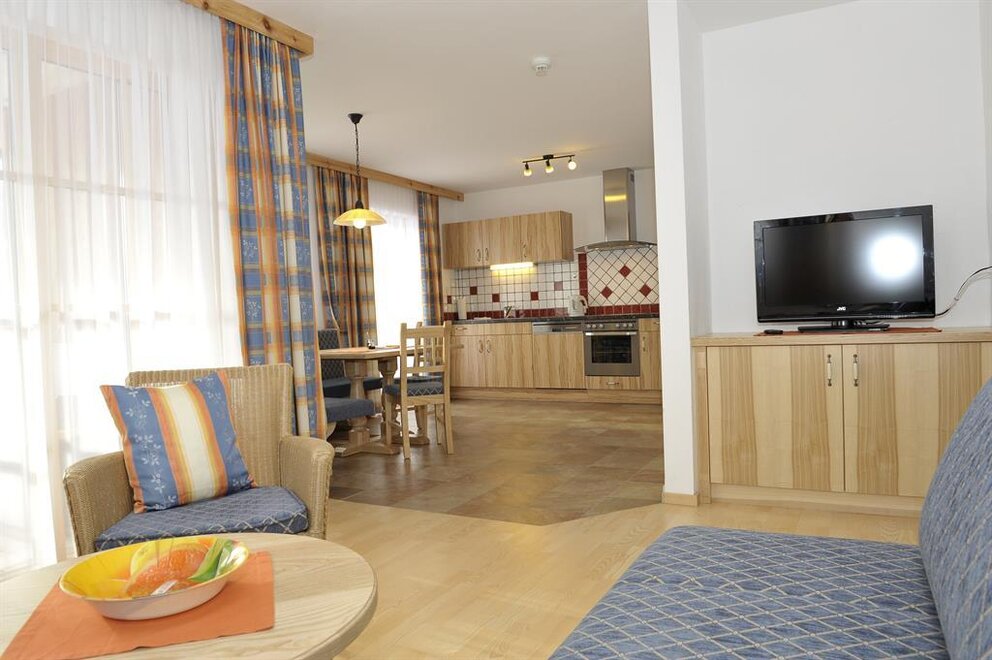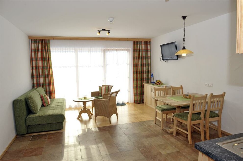 Naše apartmány zařízené v selském stylu mají velikost od 57 m² do 95 m², každý z nich disponuje internetovým připojením nebo bezplatným Wi-Fi, podlahovým vytápěním a balkonem nebo lounge či slunnou terasou s možností sezení. Prostorná a světlá obývací kuchyně nabízí útulný jídelní kout a je kompletně vybavená mikrovlnnou troubou, elektrickým sporákem s troubou a myčkou nádobí. Světlé ložnice jsou zařízené z jasného masivního dřeva. Moderní koupelny nabízejí sprchu a samostatné WC. Rádi vám nabídneme 2 bezbariérové apartmány s přístupnými sanitárními zařízeními. Zvláštní atrakcí je vlastní infrasauna v každém apartmánu, která po aktivním dni na dovolené poskytuje relaxaci a příjemný pocit tepla.