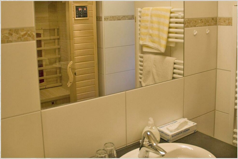 Koupelna a WC jsou oddělené, všechny místnosti jsou vytápěny podlahovým topením a k dispozici je také infračervená kabina. K bytu Kulm patří také terasa.