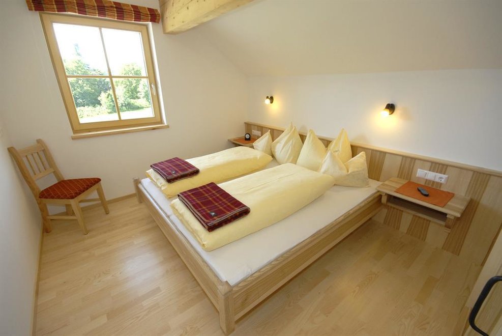 Farma Stiererhof se skládá ze čtyř nově postavených budov, všechny úmyslně oddělené, každá sama za sebe. Hlavní dům, penzion s prostornými – z toho 2 bezbariérovými, apartmány pro 2 – 6 osob. Za ním se nacházejí naše hospodářské budovy jako moderní stáj s místem pro naše mateřské krávy a telata, koně, slepice, husy, kachny, králíky a našeho psa Carla. Na farmě si hosté mohou zakoupit a užít místní produkty z naší vlastní rybí farmy.