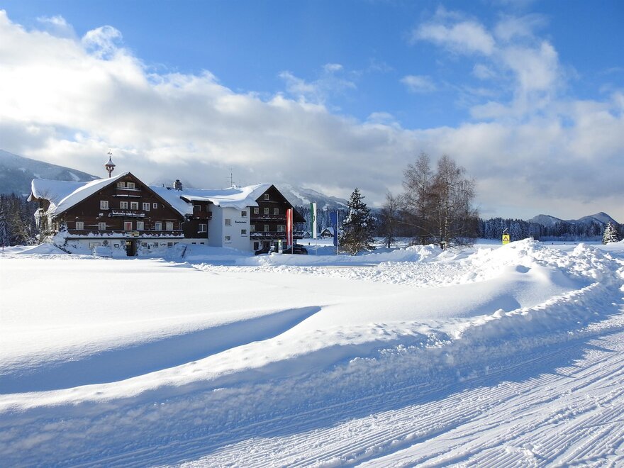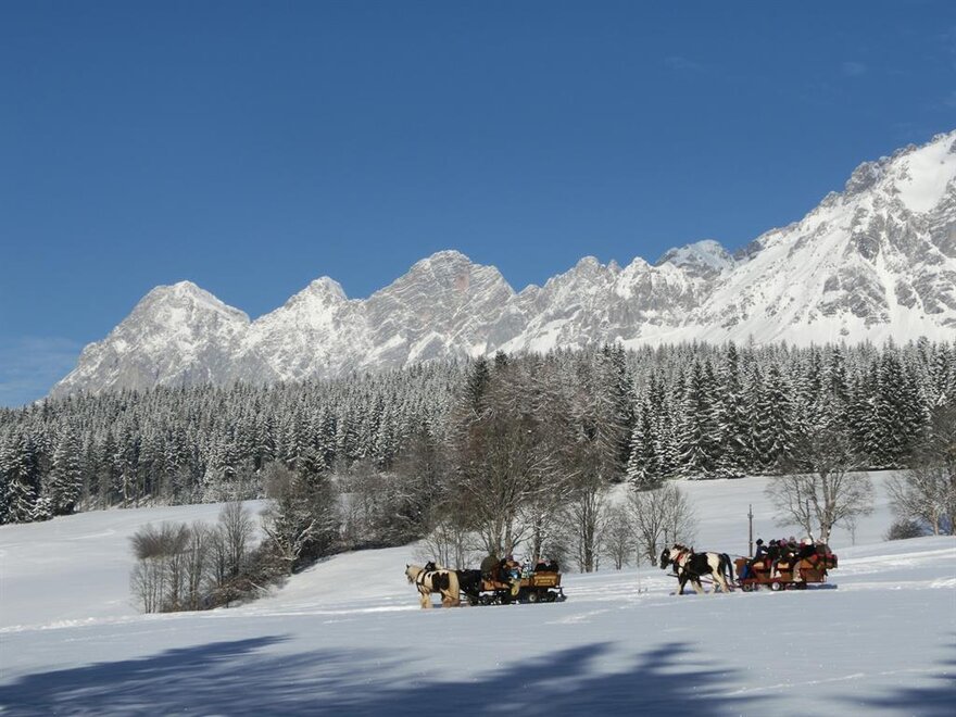 Náš tradiční 3 hvězdičkový hotel Gasthof Stockerwirt se nachází v srdci Ramsau am Dachstein v Rakousku. Prostorný, volný, plný světla, slunce a nádherný panoramatický výhled – tak lze popsat krajinu kolem našeho domu. Nádherné horské prostředí Dachsteinu a Nízkých Taur, sluneční jižní poloha, klid kolem našeho domu a široká nabídka sportovních aktivit v Ramsau am Dachstein a regionu Schladming-Dachstein zvou rodiny, sportovce a individualisty k letnímu a zimnímu pobytu v našem 3 hvězdičkovém hotelu Gasthof Stockerwirt. Náš dům v stylu Štýrska se nachází přímo u běžeckých tratí s běžeckým a skatingovým okruhem, uzlem pro běh na lyžích a turistickými stezkami. Zastávka skibusu do rodinného lyžařského areálu Ramsau am Dachstein “Kali's Erlebnispisten” a Ski amadé s 4-horským lanovkovým systémem Planai v Schladming-Dachstein, Hauser Kaibling, Hochwurzen a Reiteralm se nachází přímo před domem. V létě jsme ideálním výchozím bodem pro nesčetné turistické túry, horské výšlapy, cykloturistiku, jízdu na koni a mnohem více. Jen 5 minut od hotelu Gasthof Stockerwirt se nachází jezdecký statek s jezdeckou halou, terénní dráhou a nádhernými možnostmi jízdy, stejně jako kočárové vyjíždky pro celou rodinu. Pohodlné pokoje v našem tradičním 3 hvězdičkovém hotelu Gasthof Stockerwirt jsou prostorné a částečně zařízené pohovkami ve štýrském stylu a mají koupelnu/WC nebo sprchu/WC, satelitní TV, rádio, balkon s nádherným výhledem na jižní stěny Dachsteinu a Taur. Náš dům s výtahu je bezbariérově přístupný a nabízíme 2 bezbariérové pokoje. Odpočinek najdete v malém, ale kvalitním wellness prostoru s barevným světlem a aromaterapií, který zahrnuje saunu a infračervenou kabinu. Po dni plném aktivit, jako je lyžování nebo turistika, je to skutečné potěšení pro unavené svaly. Oceněni “Dobrá štýrská restaurace”, “Gastronomický ráj” a “AMA gastro pečetí” za používání místních produktů, hýčkáme vás rakouskými a regionálními štýrskými pokrmy, ale také mezinárodními a vegetariánskými pokrmy. Ráno vás přivítáme na bohatém snídaňovém bufetu s čerstvým pečivem, musli, džemy, medem, pomazánkami, sýrem, vejci a šunkou z regionu Schladming-Dachstein. Večer si můžete vybírat z nabídek jídel a čerstvých, křupavých salátů z bufetu. Jako tečku si vychutnáte naše domácí dezerty, štrúdly a dorty. Během vaší rodinné dovolené v hotelu Gasthof Stockerwirt je pro děti k objevování spousta zábavy. Na dětském hřišti s traktorovými pedály, trampolínou, gokartem, stolním tenisem a lezeckou konstrukcí si vaše děti v dovolené mohou podle libosti užít. Nuda tu nikdy nehrozí! Odpočívejte se celou rodinou v našem 3 hvězdičkovém hotelu Gasthof Stockerwirt v rodinné atmosféře v Ramsau am Dachstein! Vaše rodina Reiter