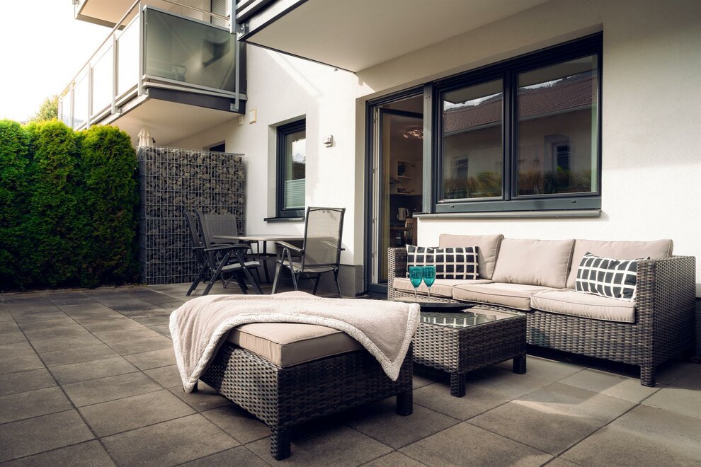 Jasným vrcholem je 30 m² velká sluneční terasa s privátní venkovní saunou – exkluzivní pro vaši relaxaci s výhledem na Planai a Hochwurzen. Stylový venkovní lounge a jídelní prostor zvou k pobytu na čerstvém vzduchu.