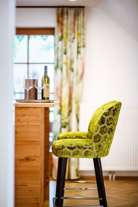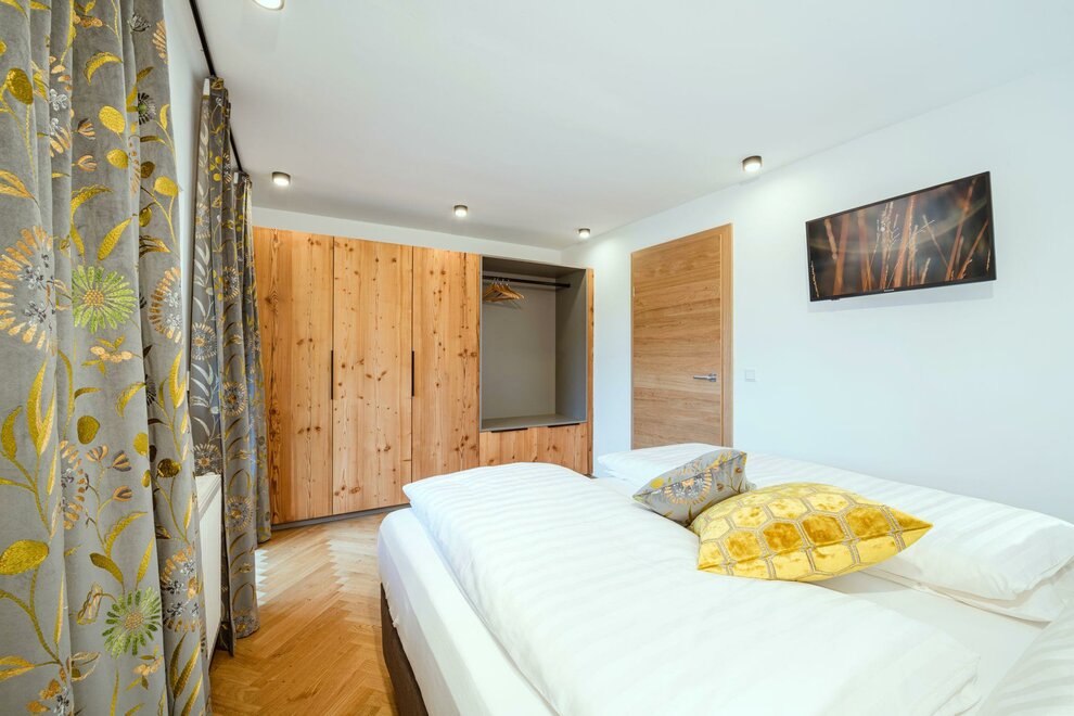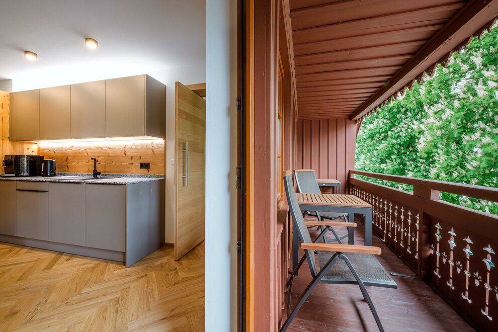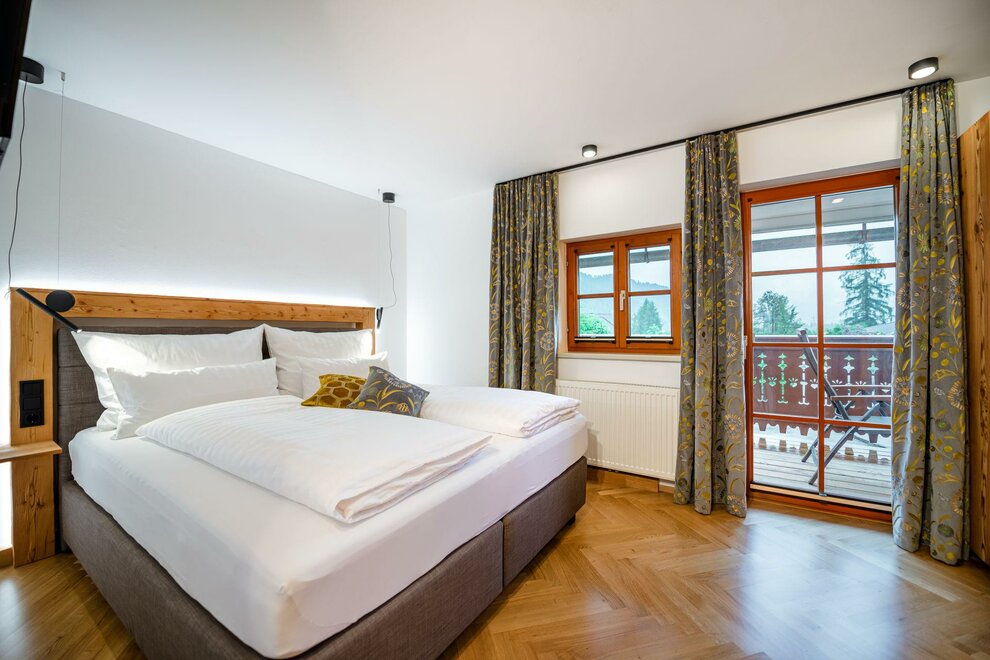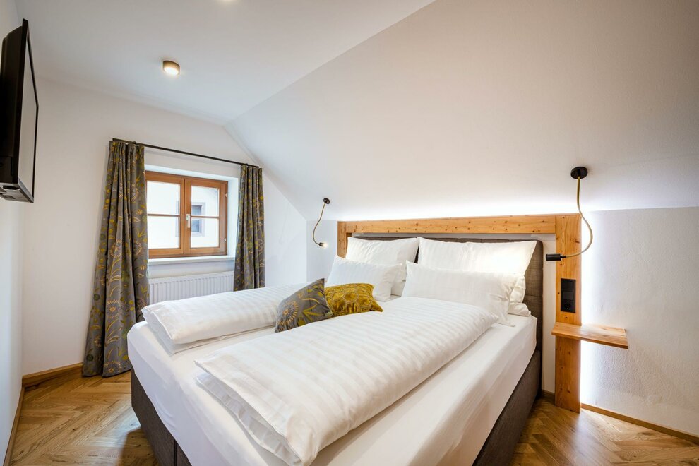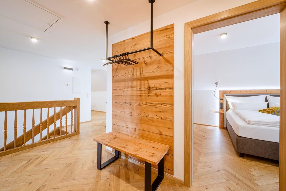 V apartmánu Johann na vás čeká opravdu královský zážitek, neboť obýváte celé podkroví s výhledem na všechny světové strany. Chráněný balkon vám poskytuje diskrétní pohledy na malebný vesnický život a zve k setrvání. Přírodní materiály, regionální řemeslo, hodně dřeva, stylový výběr jemných textilií, barev a vzorů vytvářejí dokonalou rovnováhu mezi stylovostí a pohodlím. Kvalitní parketová podlaha a moderní osvětlení dotvářejí exkluzivní pocit bydlení. Zvláštní lahůdka: vlastní sauna z místního jedlového dřeva s výhledem na majestátní Grimming.Vybavení pokojů